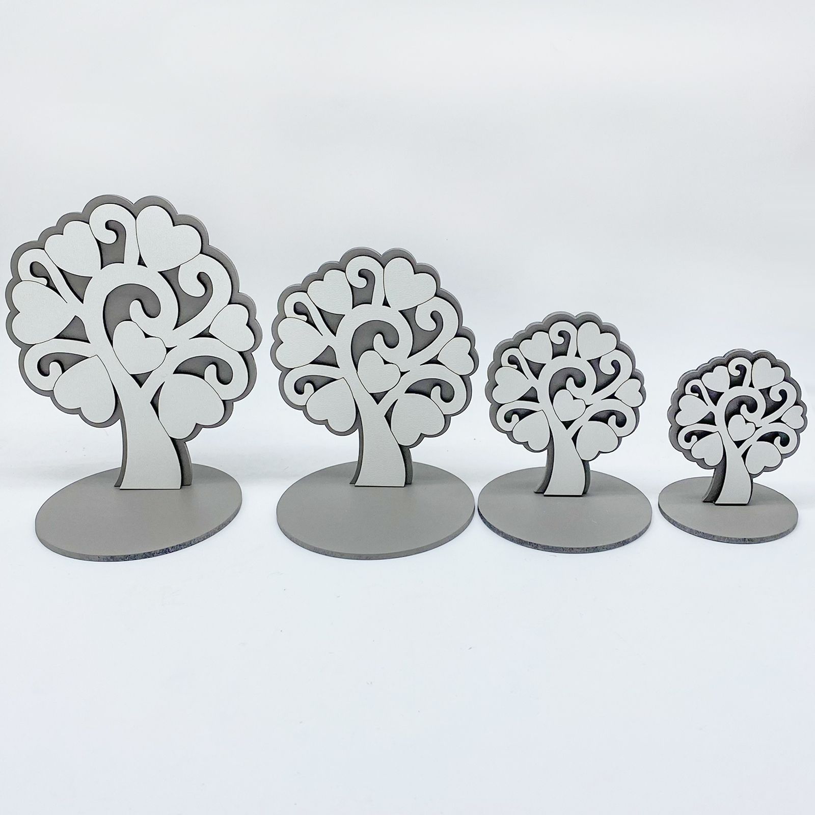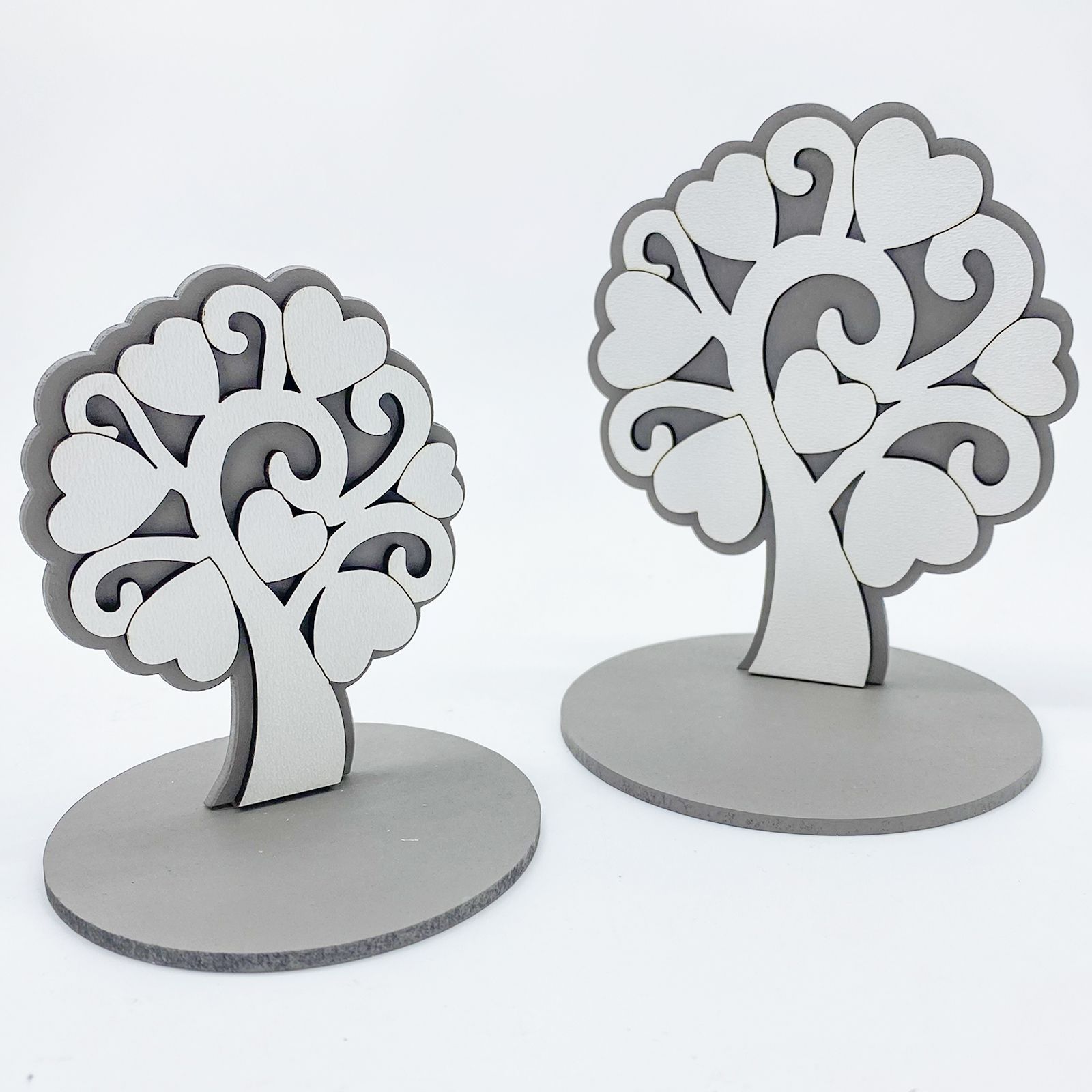 Acquista subito questi incantevoli alberi della vita in legno naturale, in doppia tonalità tortora e bianco per le foglie, con base rotonda in tinta. Ideali da utilizzare come basi per creare bomboniere battesimo e comunione!