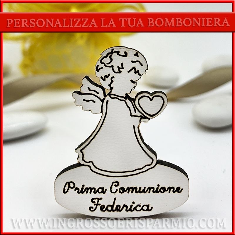 Legnetto a forma di angelo con cuore tra le mani con base per INCISIONE PERSONALIZZATA A TUA SCELTA (Nome e Data, Evento e Nome, solo Nome, ecc).