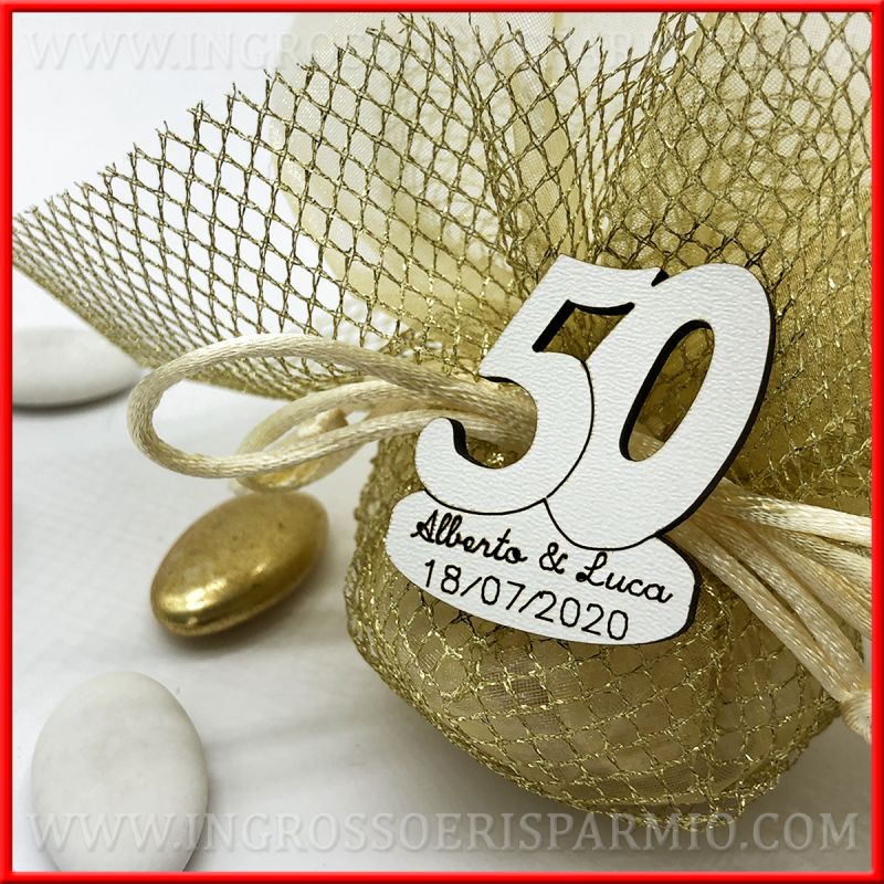 DECORAZIONI PERSONALIZZATE IN LEGNO: accessori per bomboniere originali compleanno 50 anni uomo e donna o per adornare confettate per anniversario nozze d'oro.