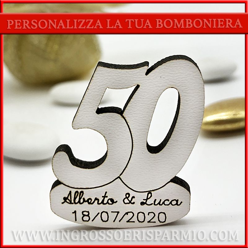 A prezzi economici, potrai realizzare bomboniere personalizzate con NOME E DATA: l'incisione, se richiesta, sarà effettuata al di sotto del numero 50 in legno.