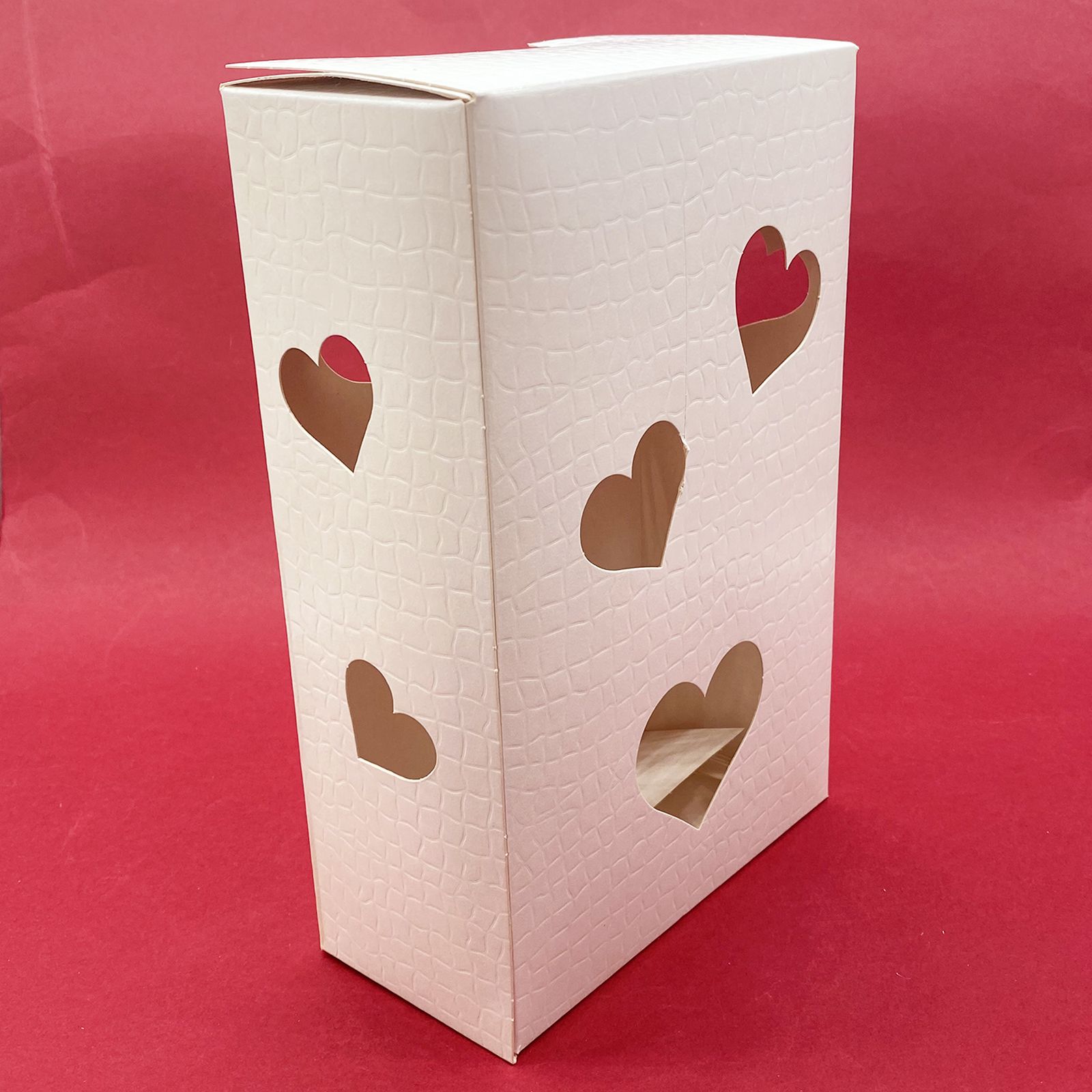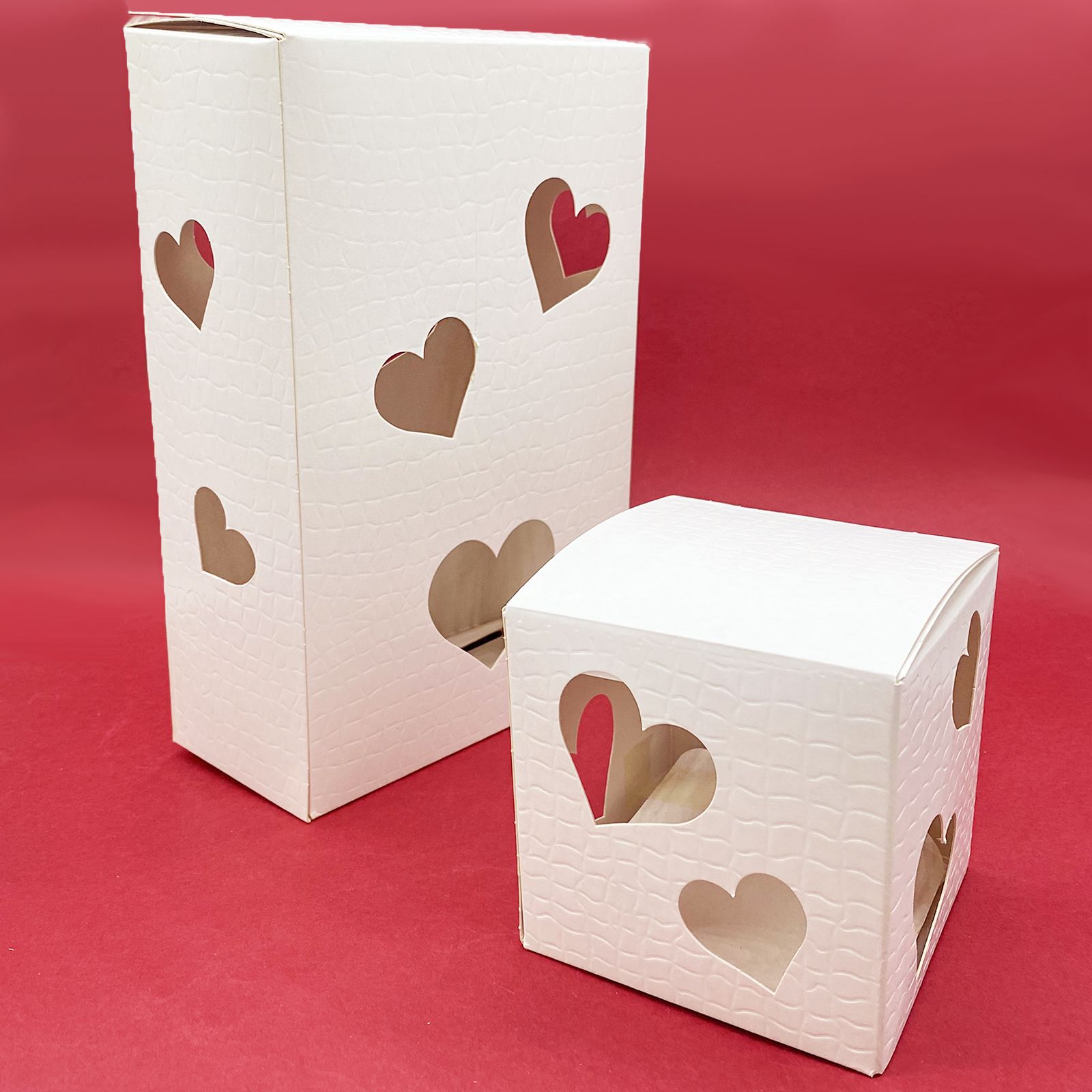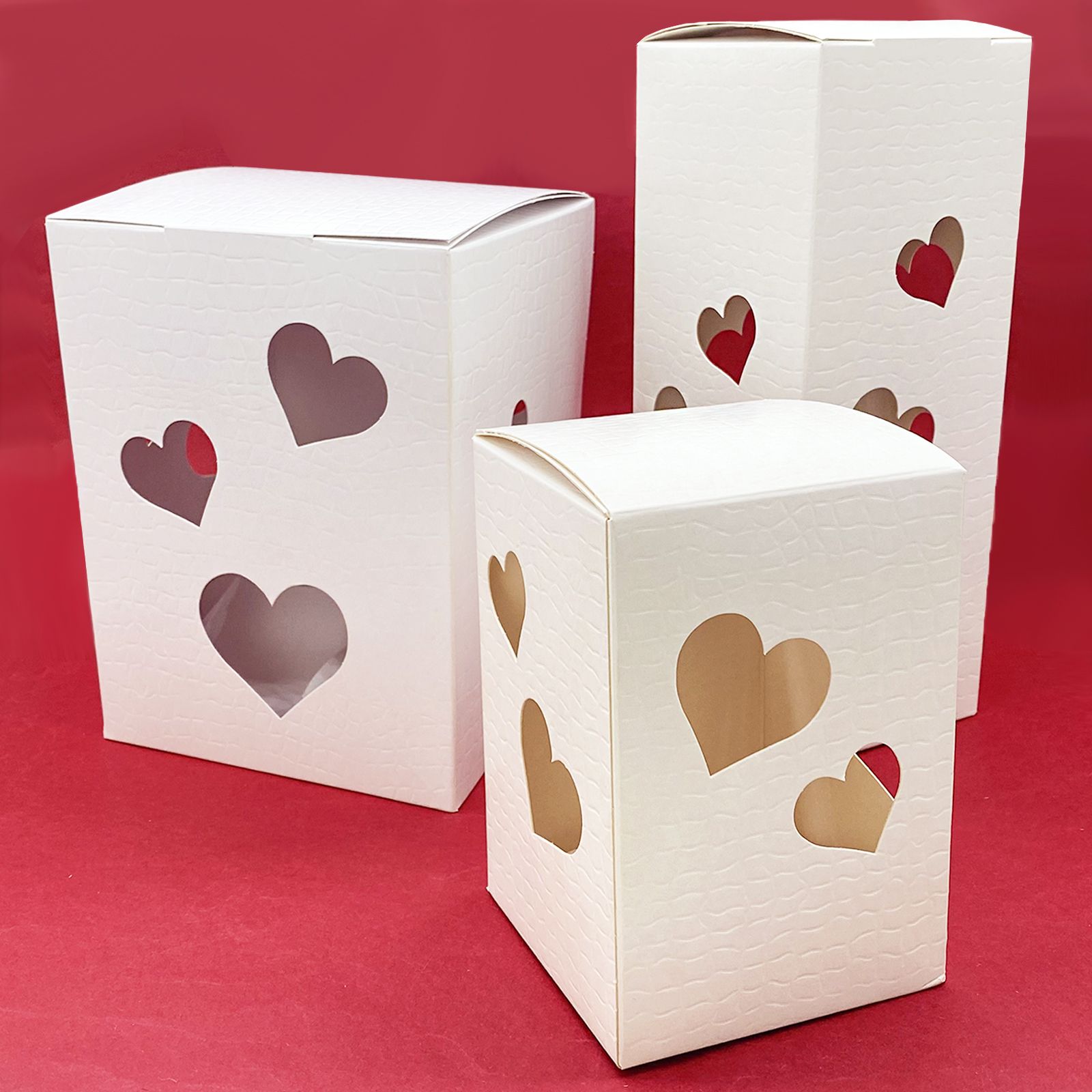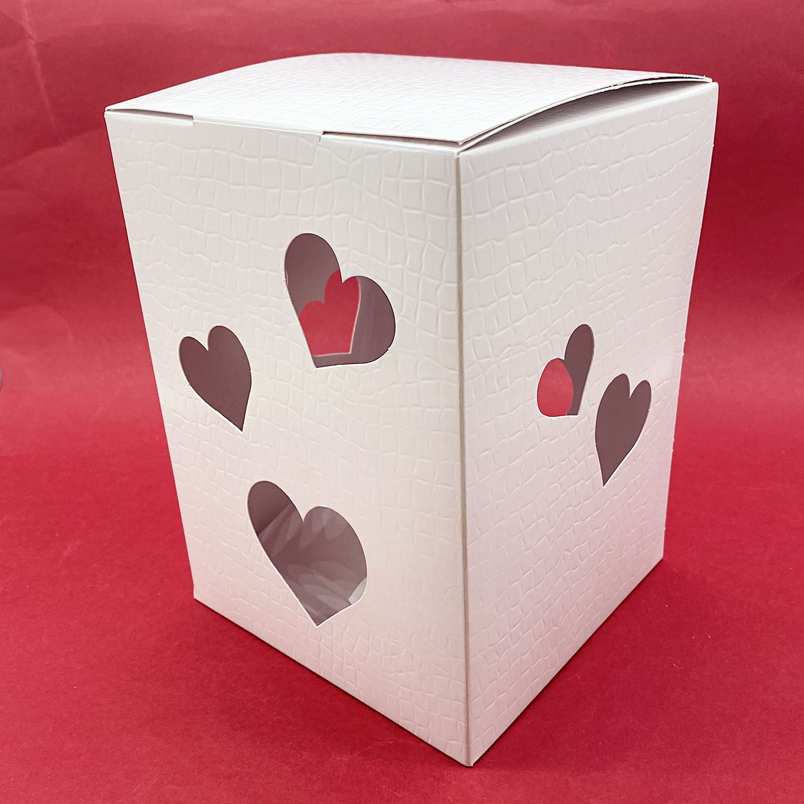 Confeziona le tue bomboniere handmade con le nostre elegantissime scatole bianche traforate in cartone rigido bianco, con trafori a forma di cuore che permettono di vedere l'interno. Le scatole sono realizzate con una particolare tramatura ad effetto plastificato. La peculiarità di queste scatole però, è che sulla parte superiore viene montato un modulo luminoso led a pile (già incluse) che permette alla scatola di diventare una vera e propria lanterna. Una volta acceso, la luce si diffonde all'interno della scatola lasciandone intravedere il contenuto.