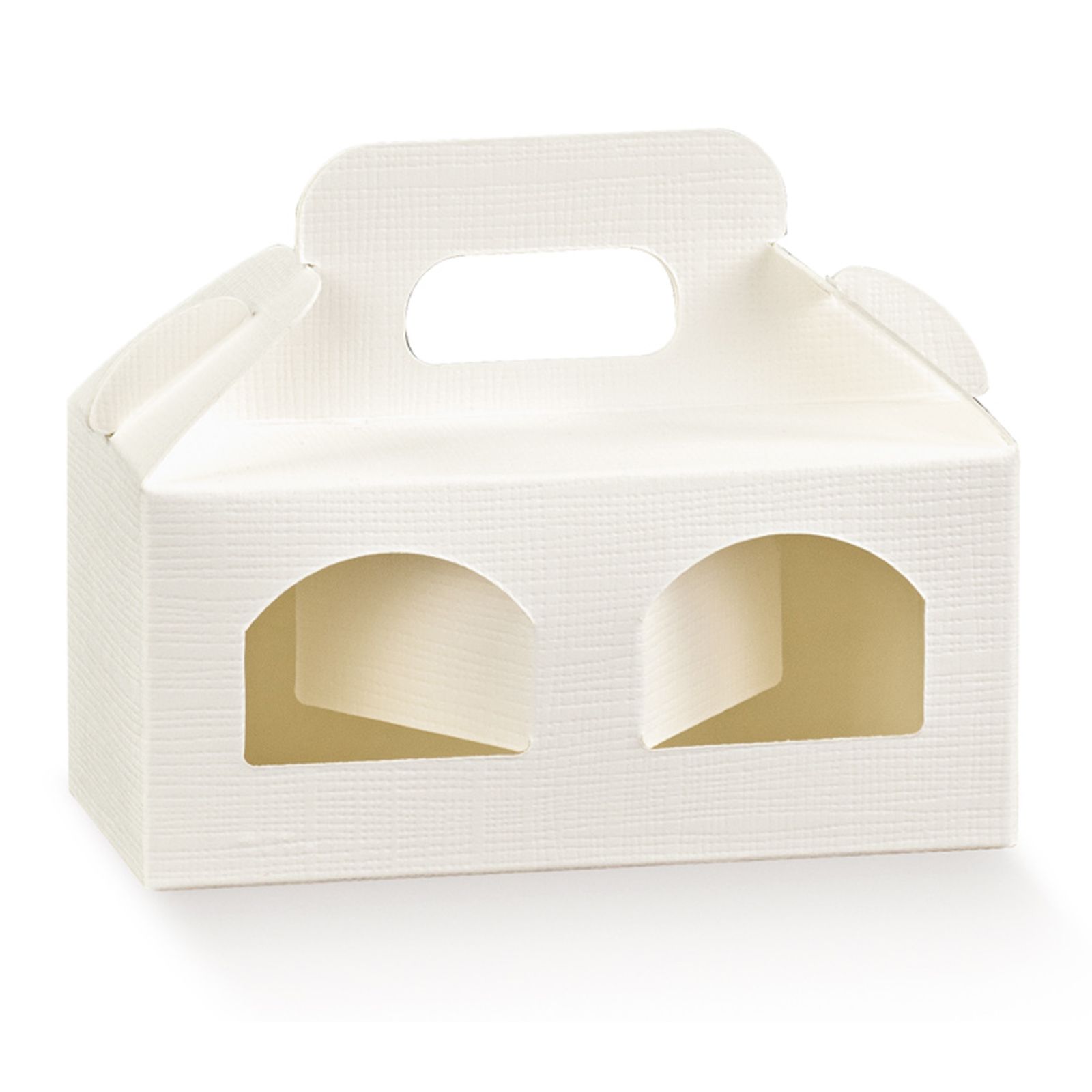 Scegli le nostre scatoline in cartoncino bianco per macarons, che possono ospitare fino a 4 dolcetti contemporaneamente preservandone gusto e consistenza! Sulla parte frontale della scatola sono intagliate due finestre che permettono di vedere l'interno della scatola.