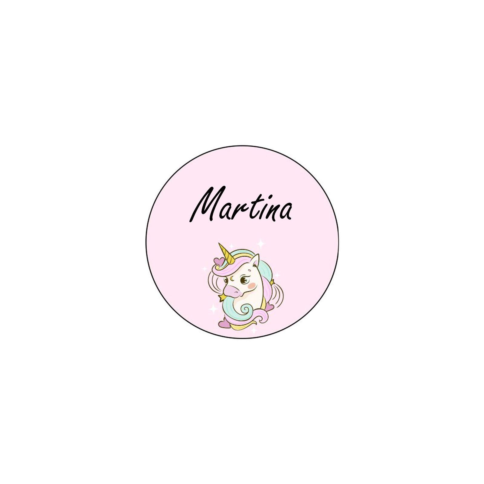 La linea di portaconfetti unicorno prevede una stampa con sfondo rosa e raffigurazione di un piccolo unicorno colorato nella parte inferiore.