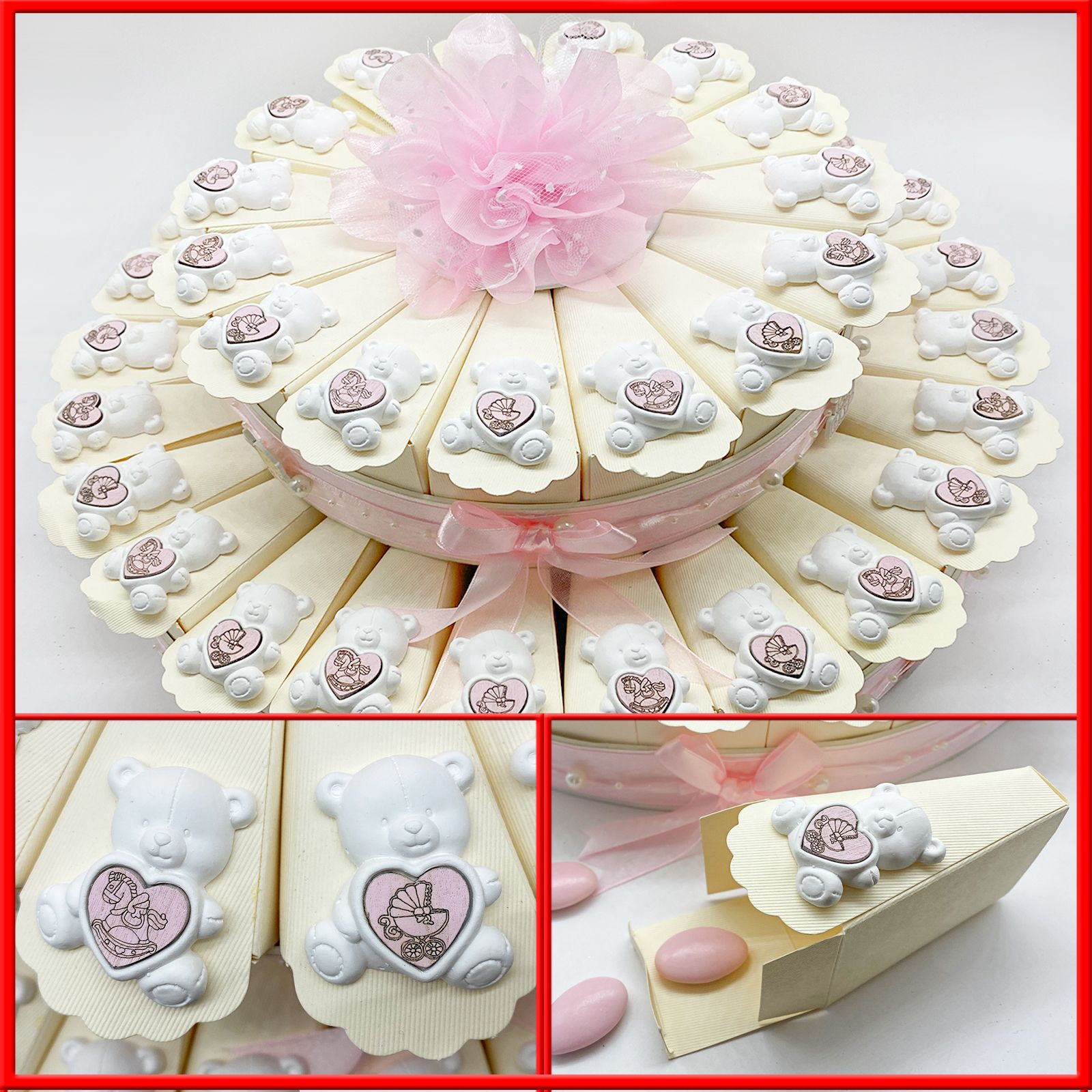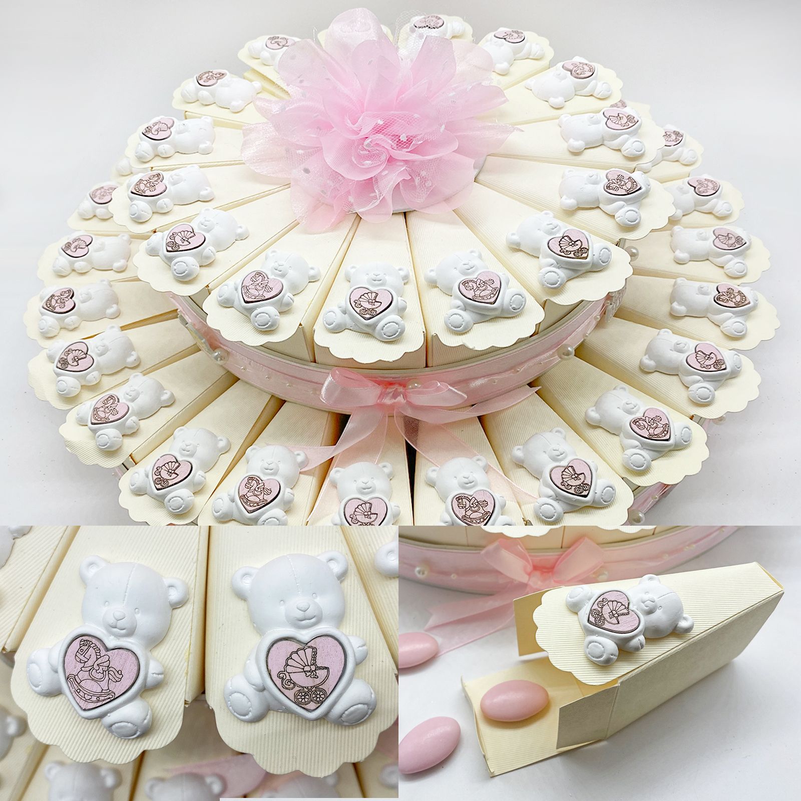 Scegli le torte con orsetti per le tue bomboniere nascita femminuccia, per confettate nascita bambina, per party gender reveal bimba.
