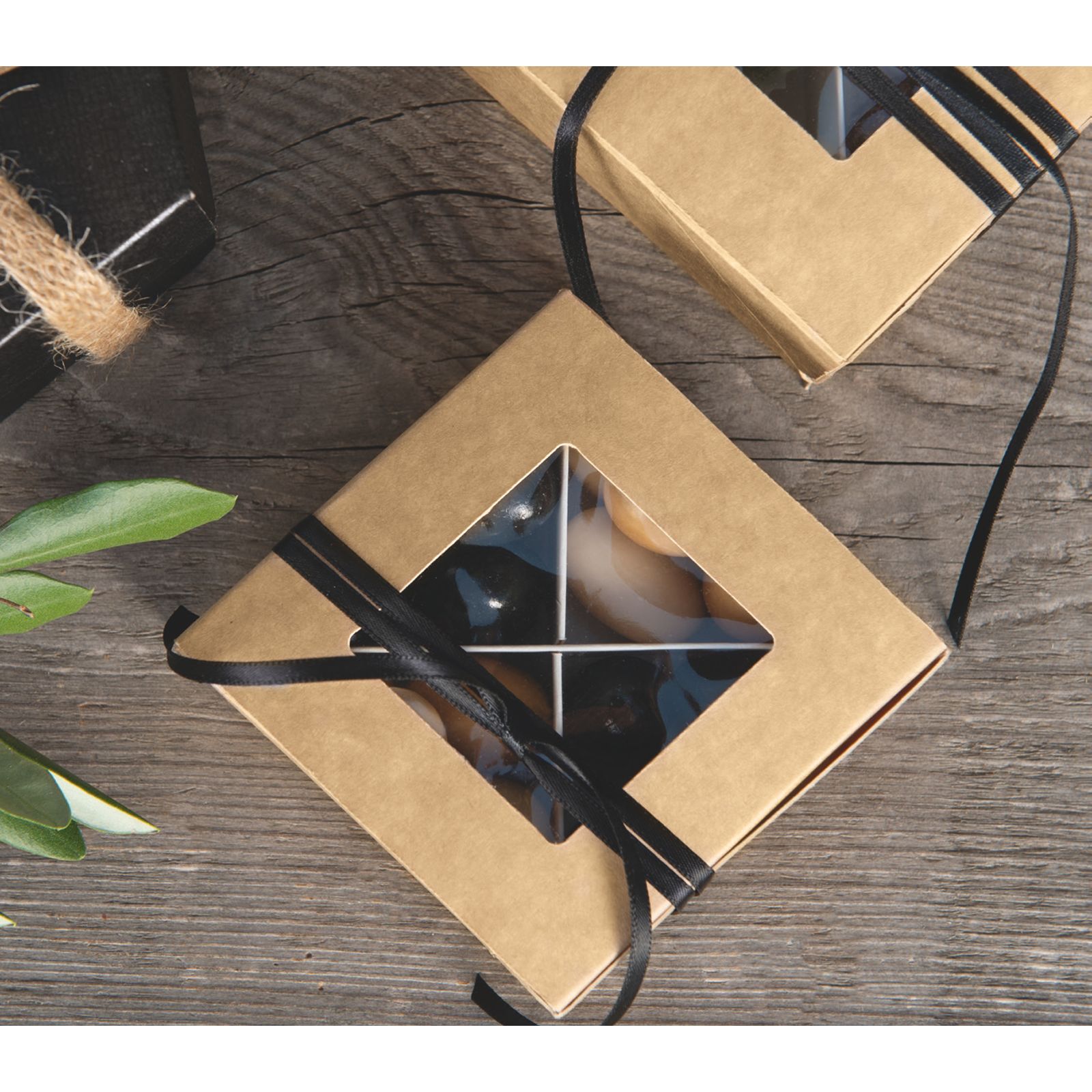 La scatola avana con divisori e coperchio trasparente in PVC è la soluzione ideale per confezionare e presentare in modo elegante i tuoi confetti o prodotti dolciari.