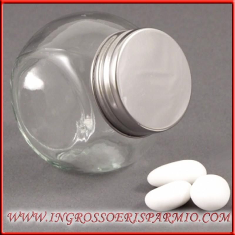 BARATTOLINI IN VETRO con tappo in METALLO ARGENTATO per BOMBONIERE FAI DA TE ad un super prezzo online !!!