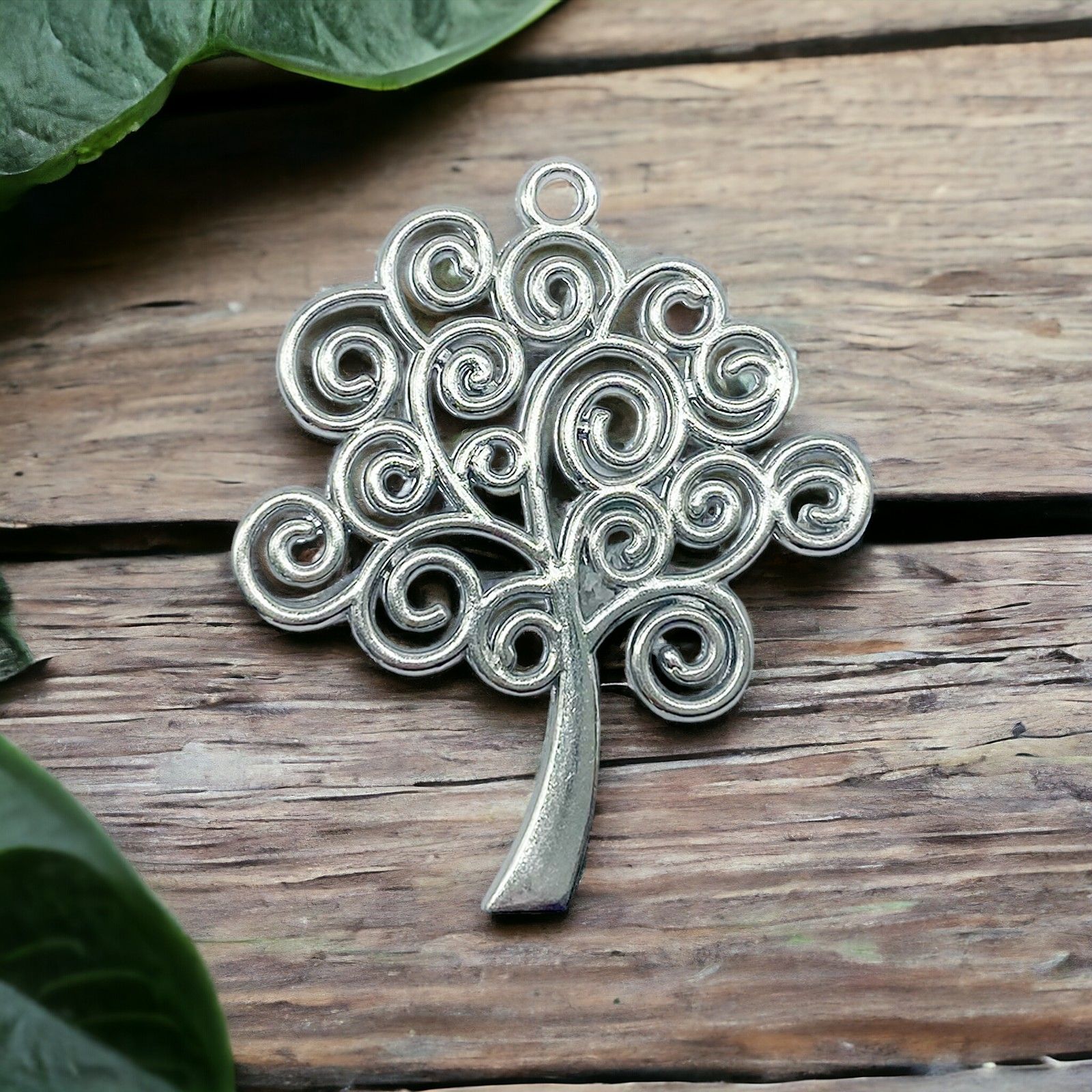 Ciondolo a forma di Albero della Vita con Rami a Spirale Argentato per un Matrimonio Unico