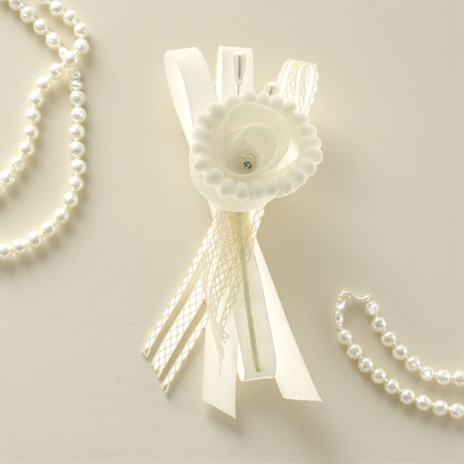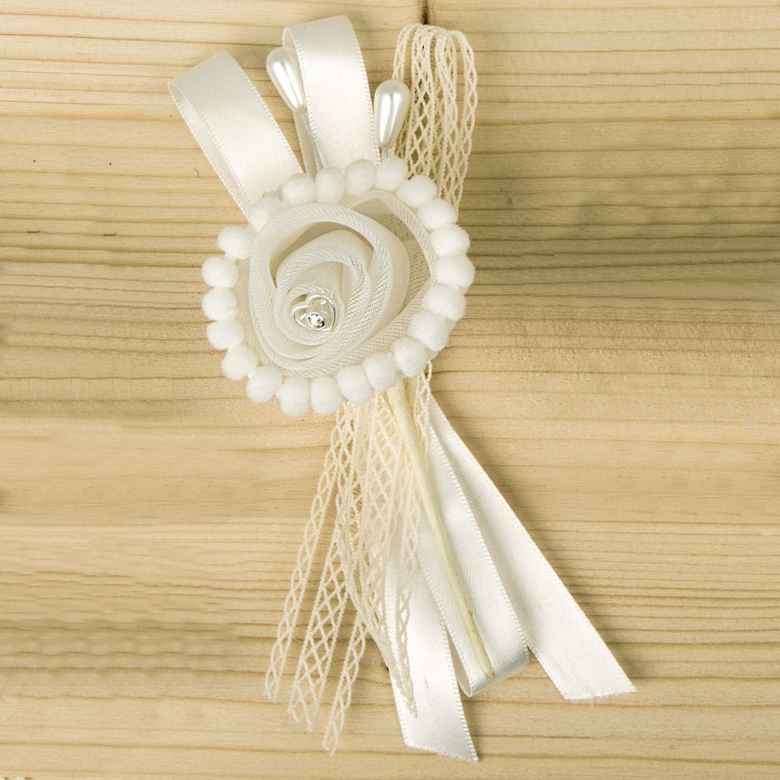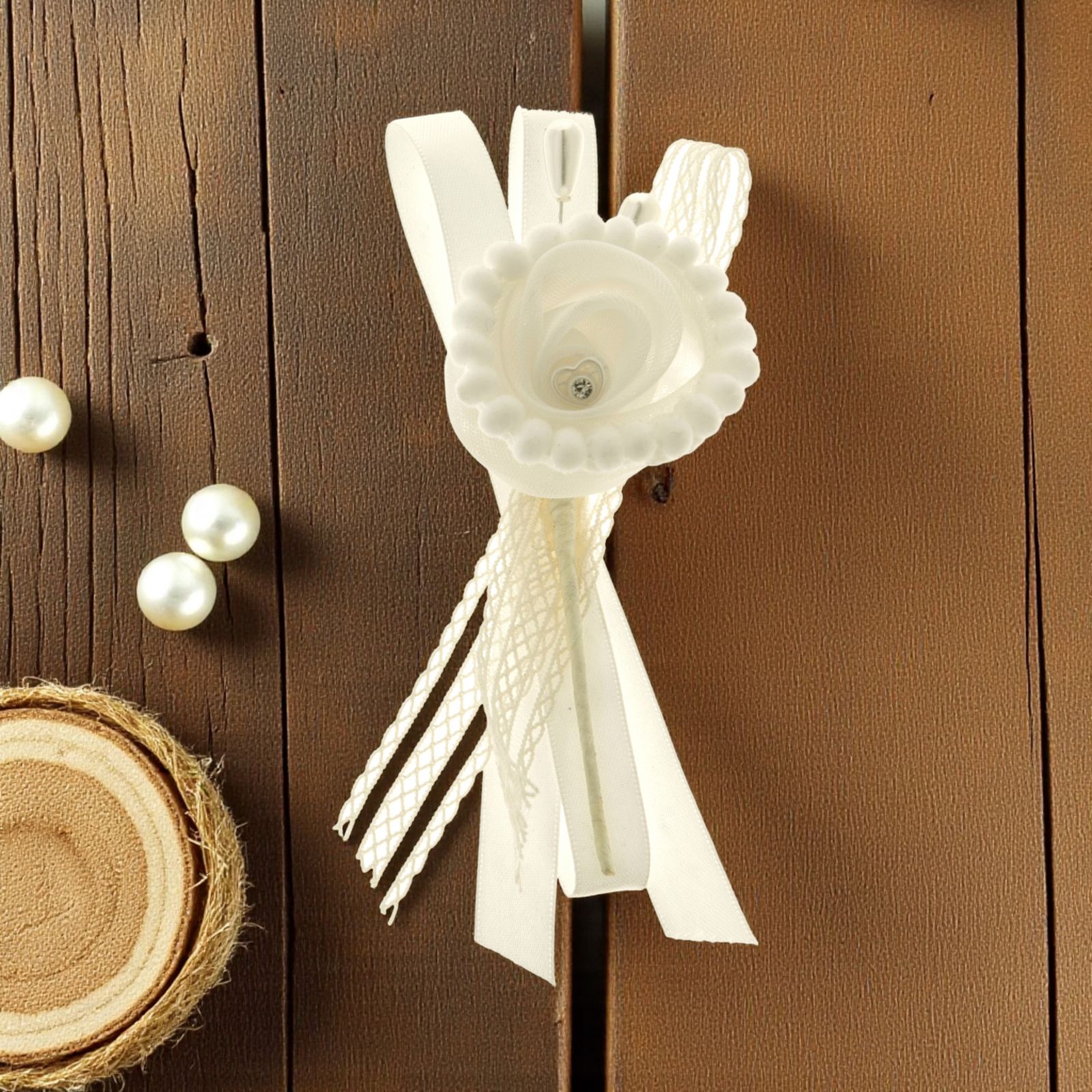 Bomboniere per Eventi: Delicata Decorazione in Tessuto con Perla, Strass e Merletto