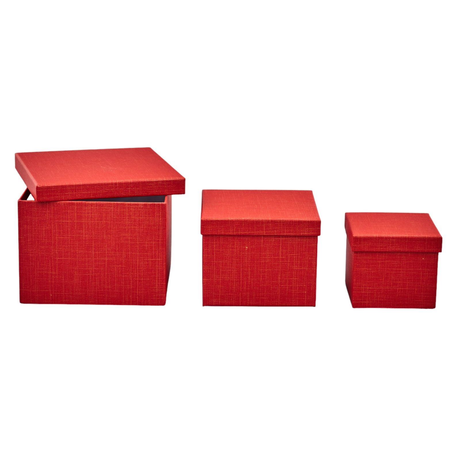 Le scatole rosse quadrate sono il modo perfetto per confezionare le bomboniere. Queste scatole hanno un design unico e sono impilabili per conservare e trasportare in modo sicuro tutti gli oggetti. Il tris è composto da tre scatole di diverse dimensioni – 11.5x11.5x10cm, 15x15x12cm e 19x19x14cm – e sono realizzate in cartone rigido di colore rosso. Con queste scatole potrai creare un'esperienza di regalo unica e memorabile. Offri ai tuoi invitati un tocco di classe che non potranno dimenticare. La scatola è un ottimo modo per regalare qualcosa di speciale agli invitati, che ricorderanno per sempre l'occasione.