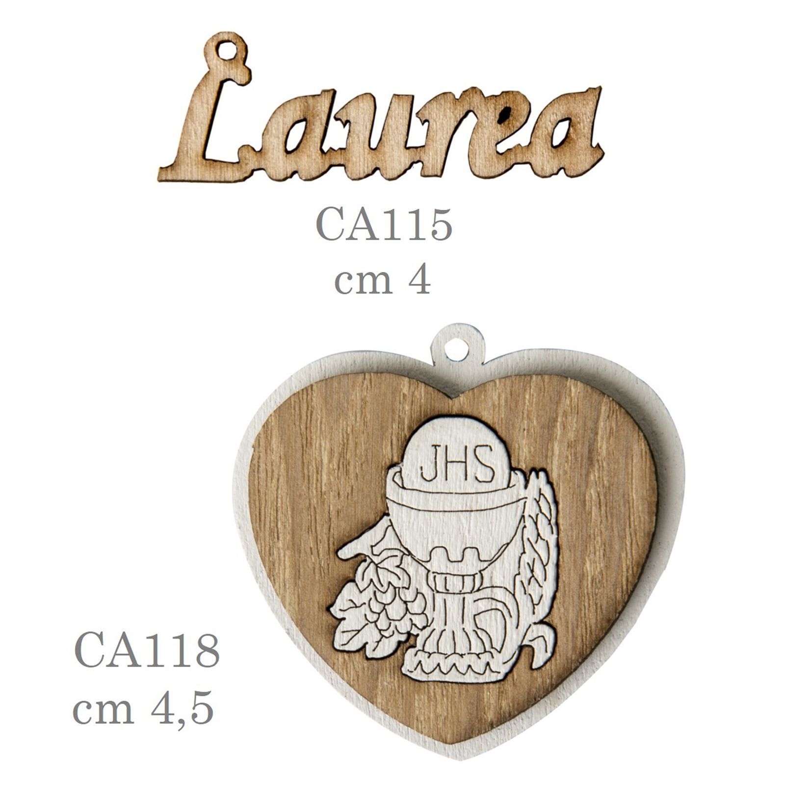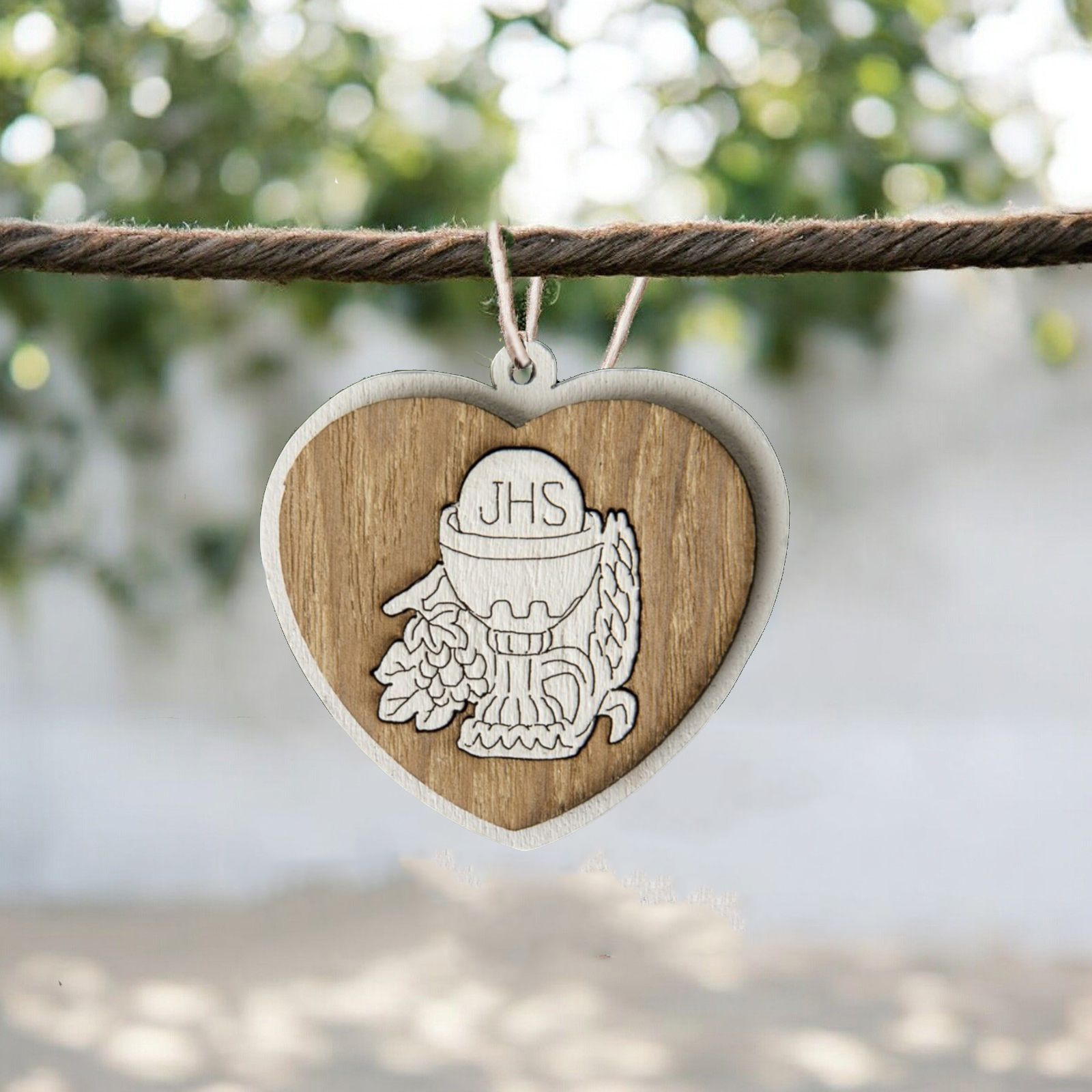 Nel giorno della Comunione del tuo bimbo o della tua bimba, regala un tocco speciale alla tua festa con questa splendida applicazione in legno a forma di cuore con al centro simboli sacri come il calice e l'ostia. Un dettaglio unico e particolare che renderà indimenticabile questo momento speciale.
