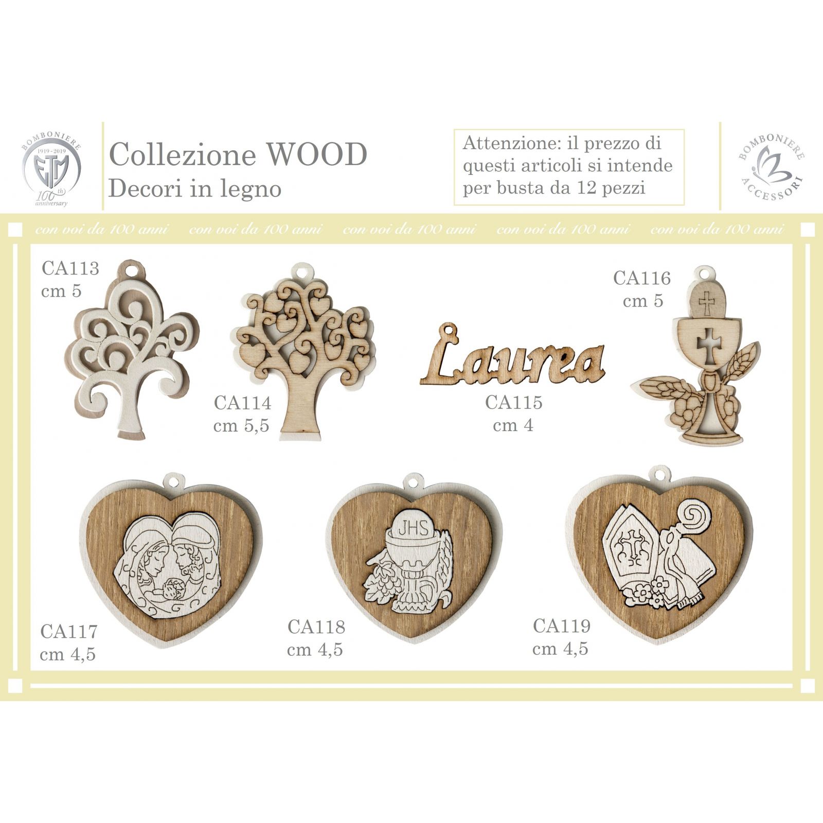 Questa accessorio per confettata è perfetto per arricchire la tua tavola come segnaposto o per decorare i pacchi bomboniera. Realizzato nei colori legno e bianco, si adatta perfettamente ad ogni allestimento.