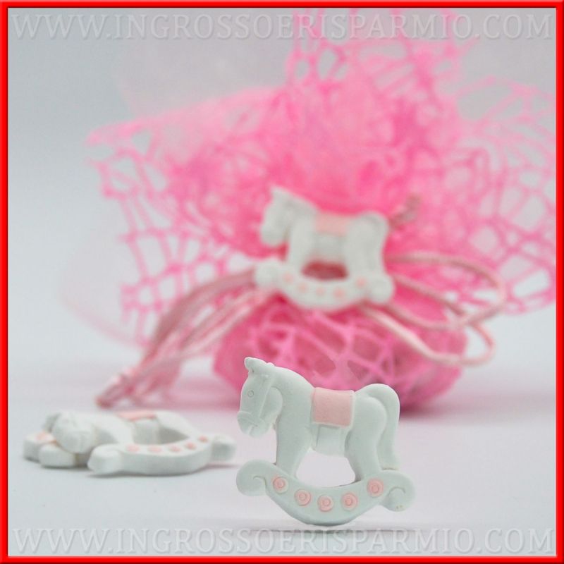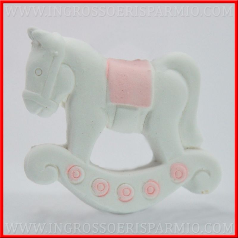 Gessetti personalizzati per femminuccia, bianchi con dettagli rosa, raffiguaranti un elegante cavalluccio a dondolo!