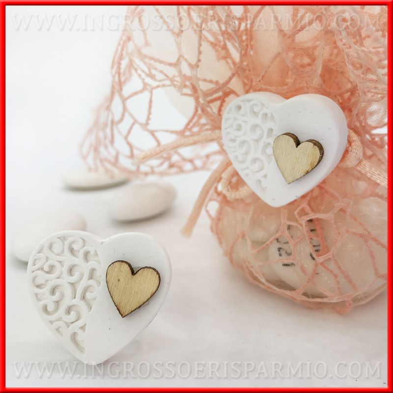 Decorazioni in gesso a forma di cuore per bomboniere matrimonio e anniversario.