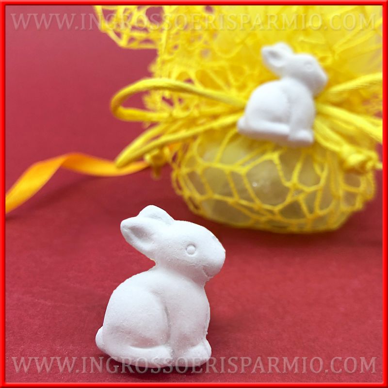 Applicazioni in gesso profumato a forma di coniglio, ideali per decorare sacchettini o scatoline portaconfetti nascita, battesimo, comunione o per creare segnaposti pasquali.