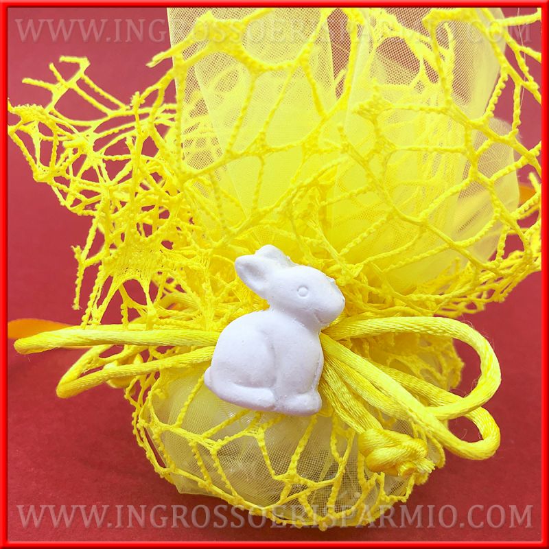 I gessetti profumati coniglietto Bunny sono bianchi, con fragranza muschio bianco, e raffigurano il dolce animaletto lateralmente. Accessori per bomboniere economiche, ideali se hai una particolare passione per questi dolci animaletti o se il tuo evento si terrà nel periodo pasquale, per realizzare una confettata a tema.