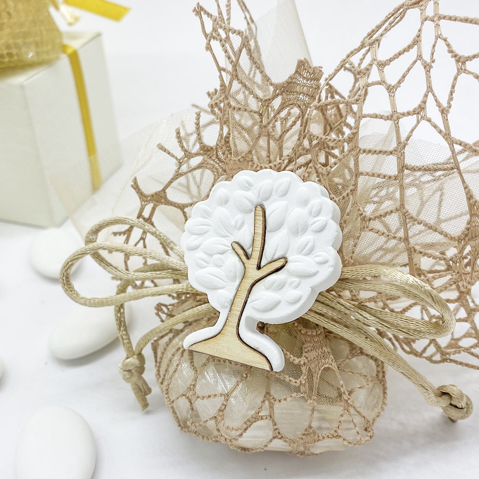Dai un tocco di classe alla tua bomboniera con questo delizioso gessetto Albero della Vita. L'albero della vita, simbolo di prosperità e nuova vita, è un elemento fondamentale per ricordare l'importanza dell'evento.