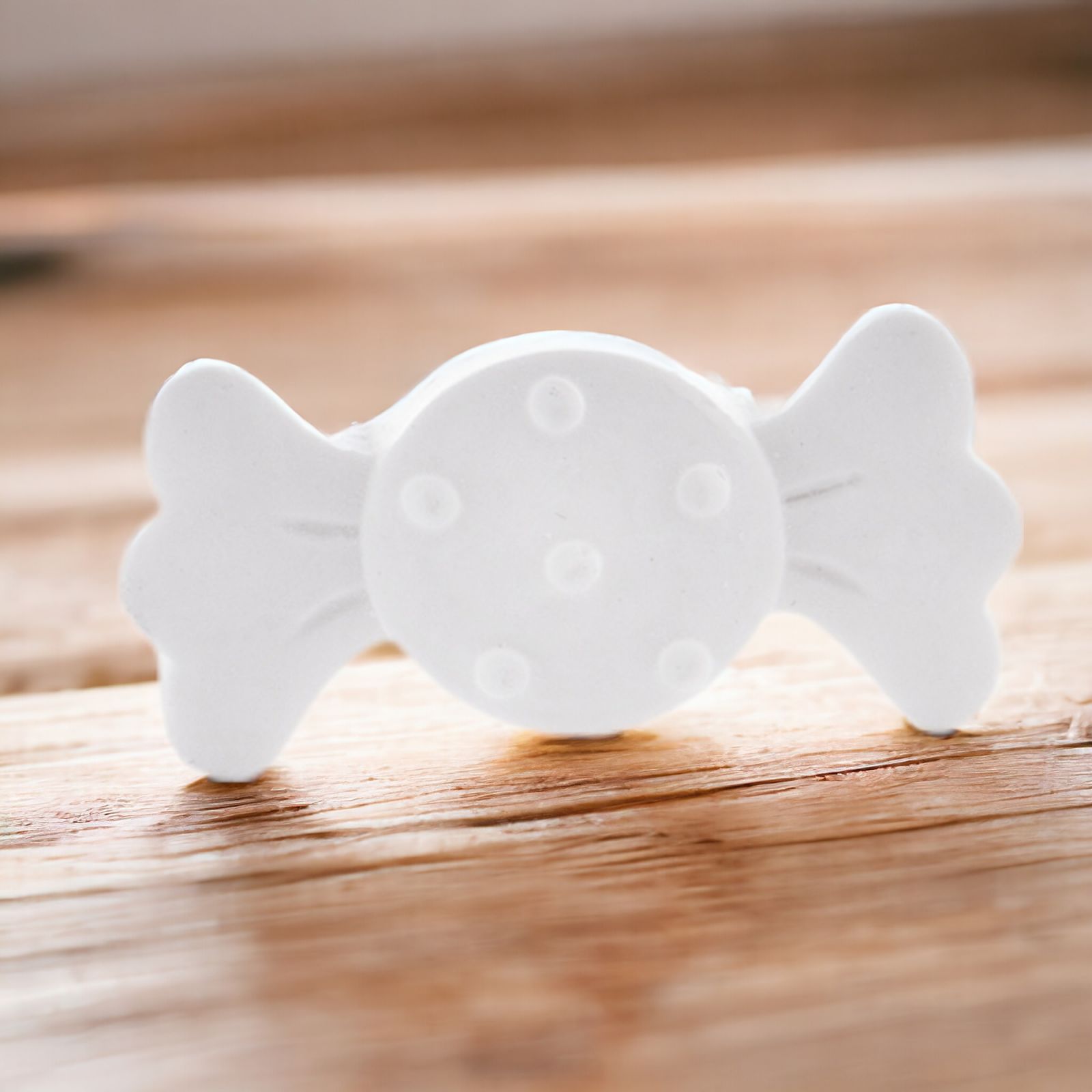 Utilizza il gessetto bianco a forma di caramella con pois per dare un tocco di originalità e stile ai tuoi eventi.
