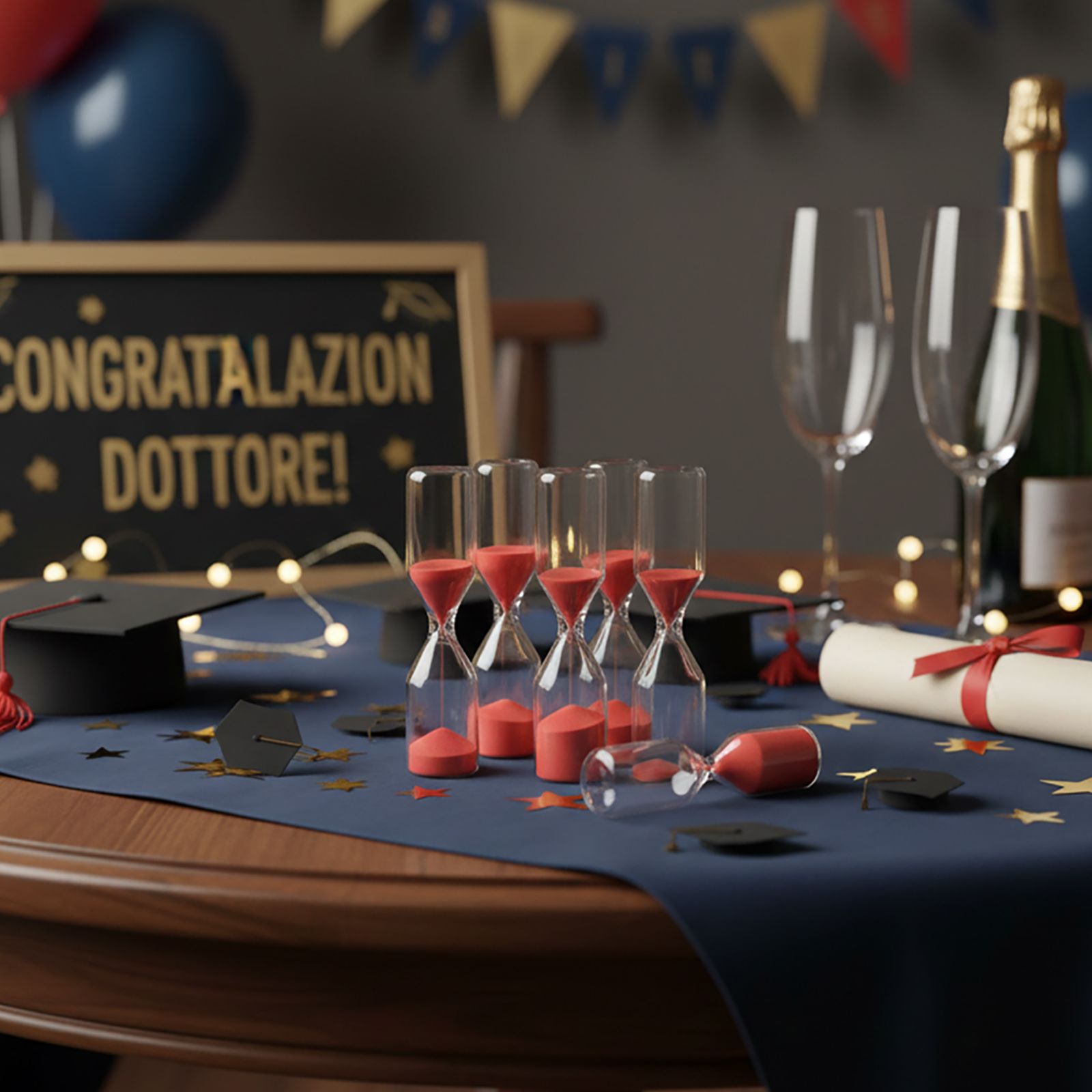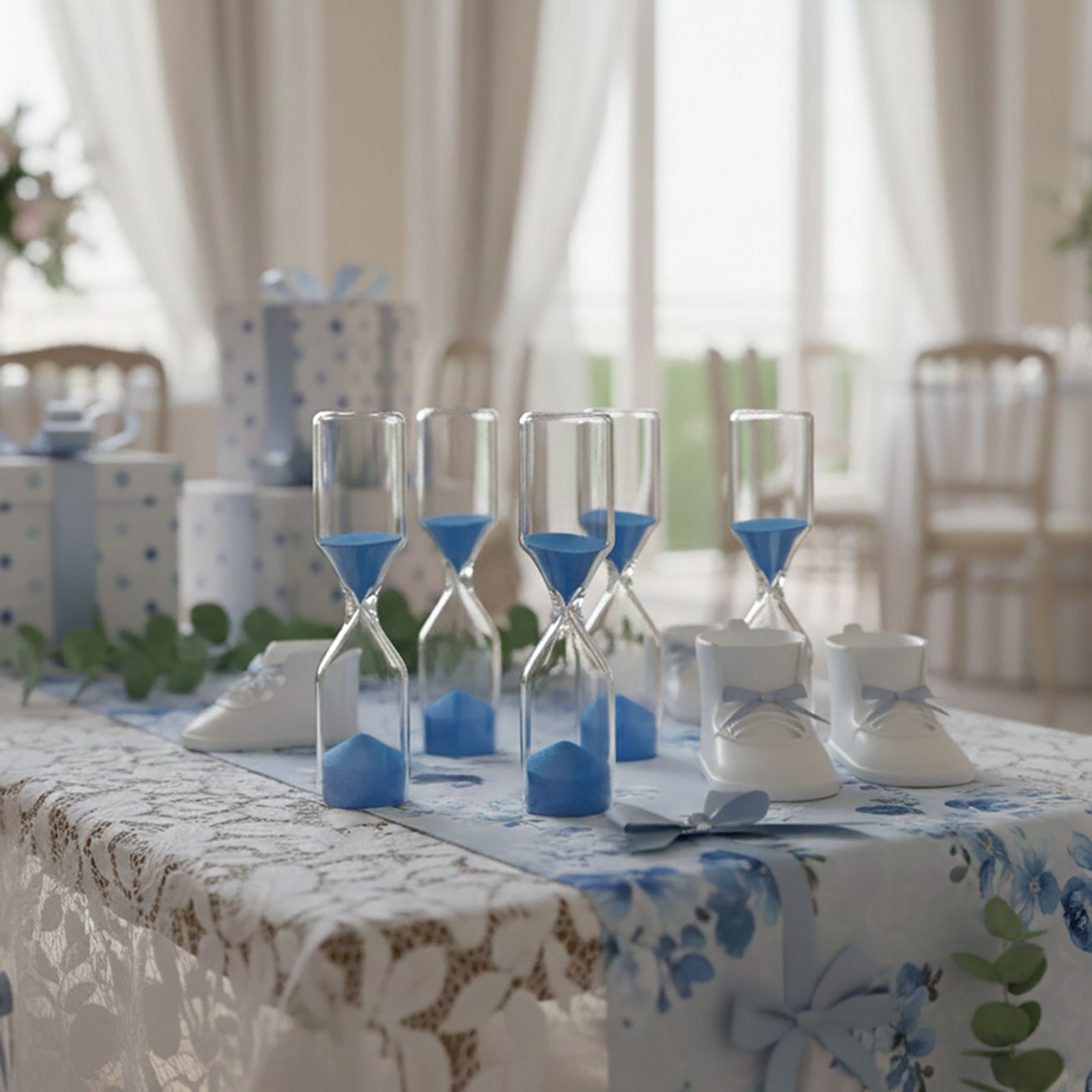 Questo gadget in vetro, è una clessidra cilindrica con diversi colori tra cui scegliere: sabbia bianca, rossa, celeste o rosa. Un complemento d'arredo davvero originale e particolare da regalare ad ogni ospite a fine festa. Perfetto per matrimoni, anniversari, sante cresime, prima comunione e primo compleanno dei bambini, la clessidra è un dono originale, simbolo di un tempo che resta per sempre!
