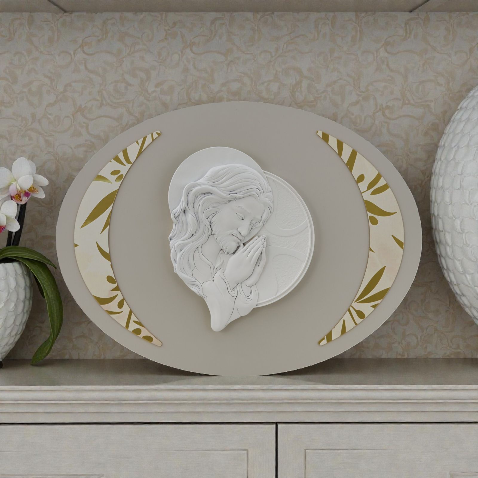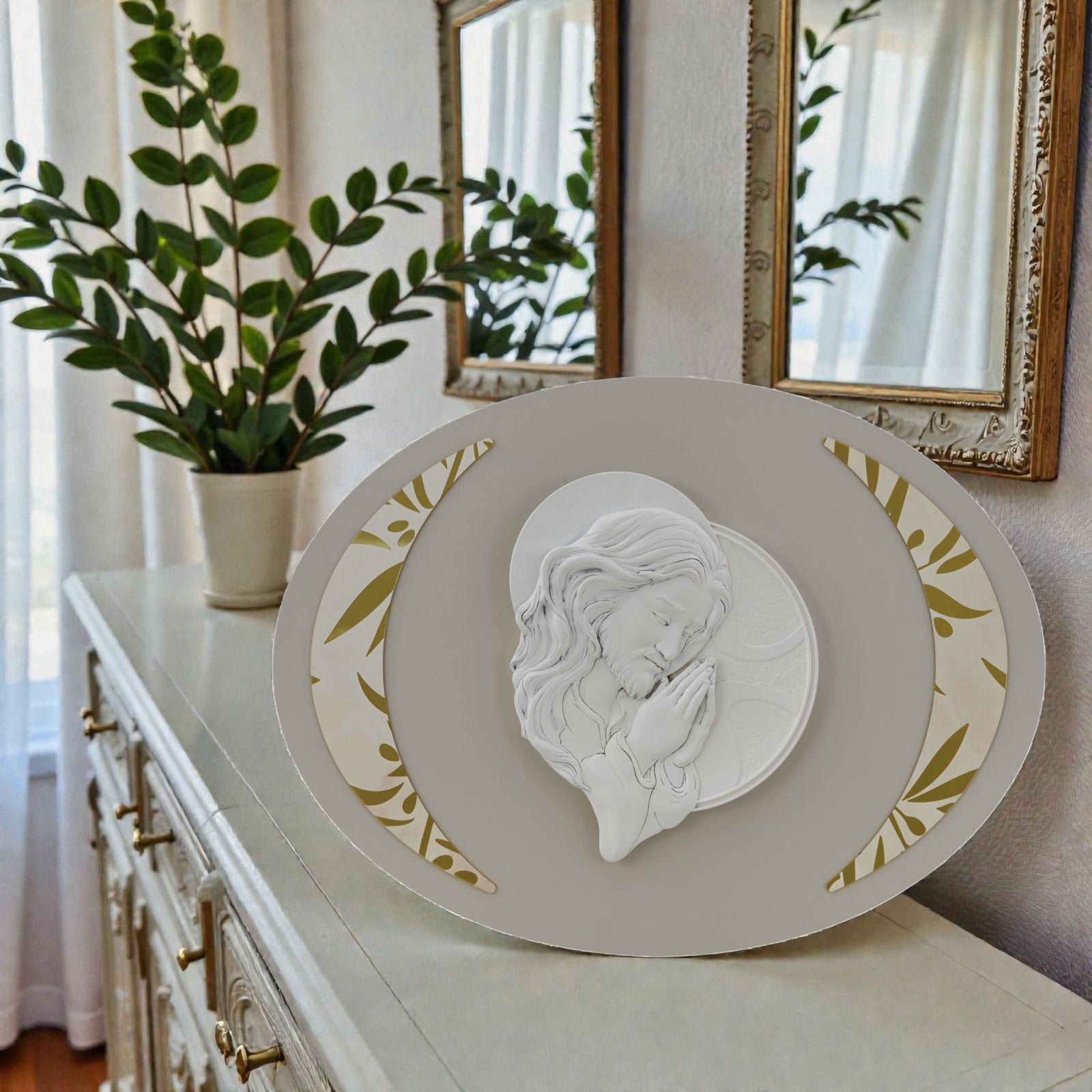 Scopri la bellezza di un capoletto ovale che porta con sé un messaggio di fede e amore. Questo elegante oggetto, con la raffigurazione del Cristo, è il regalo perfetto per celebrare momenti speciali come il battesimo, la cresima o il matrimonio. Ogni volta che sarà esposto, porterà un tocco di spiritualità e bellezza nella vita di chi lo riceve, rendendo ogni occasione indimenticabile.