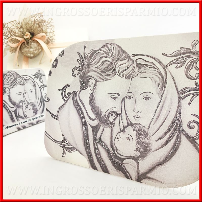Ordina le bomboniere sacre complete di scatola regalo e di confezionamento con sacchetto e 5 confetti: le icone Sacra Famiglia saranno pronte per essere regalate agli invitati!
