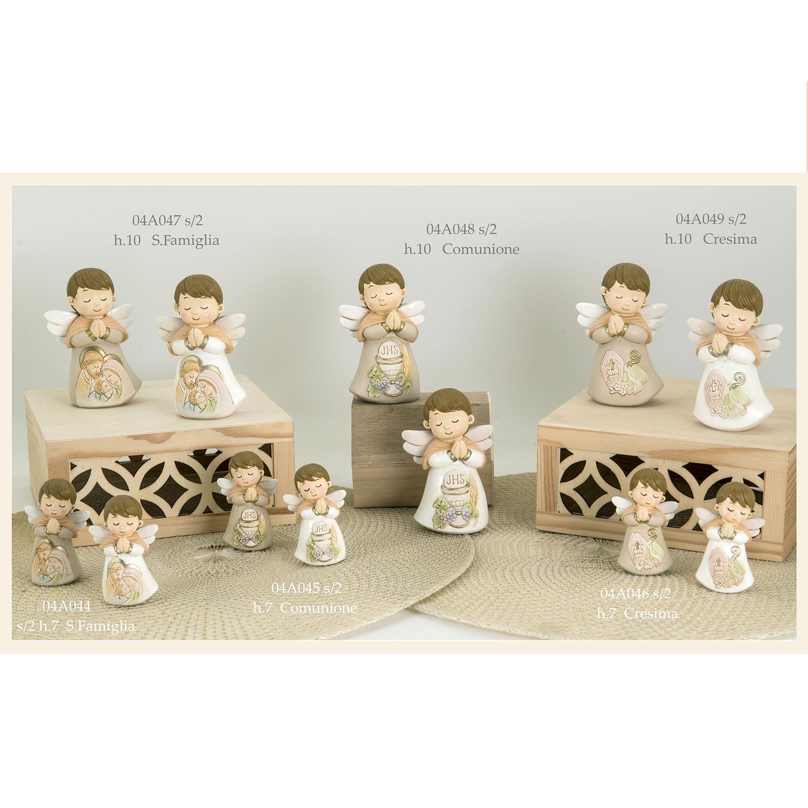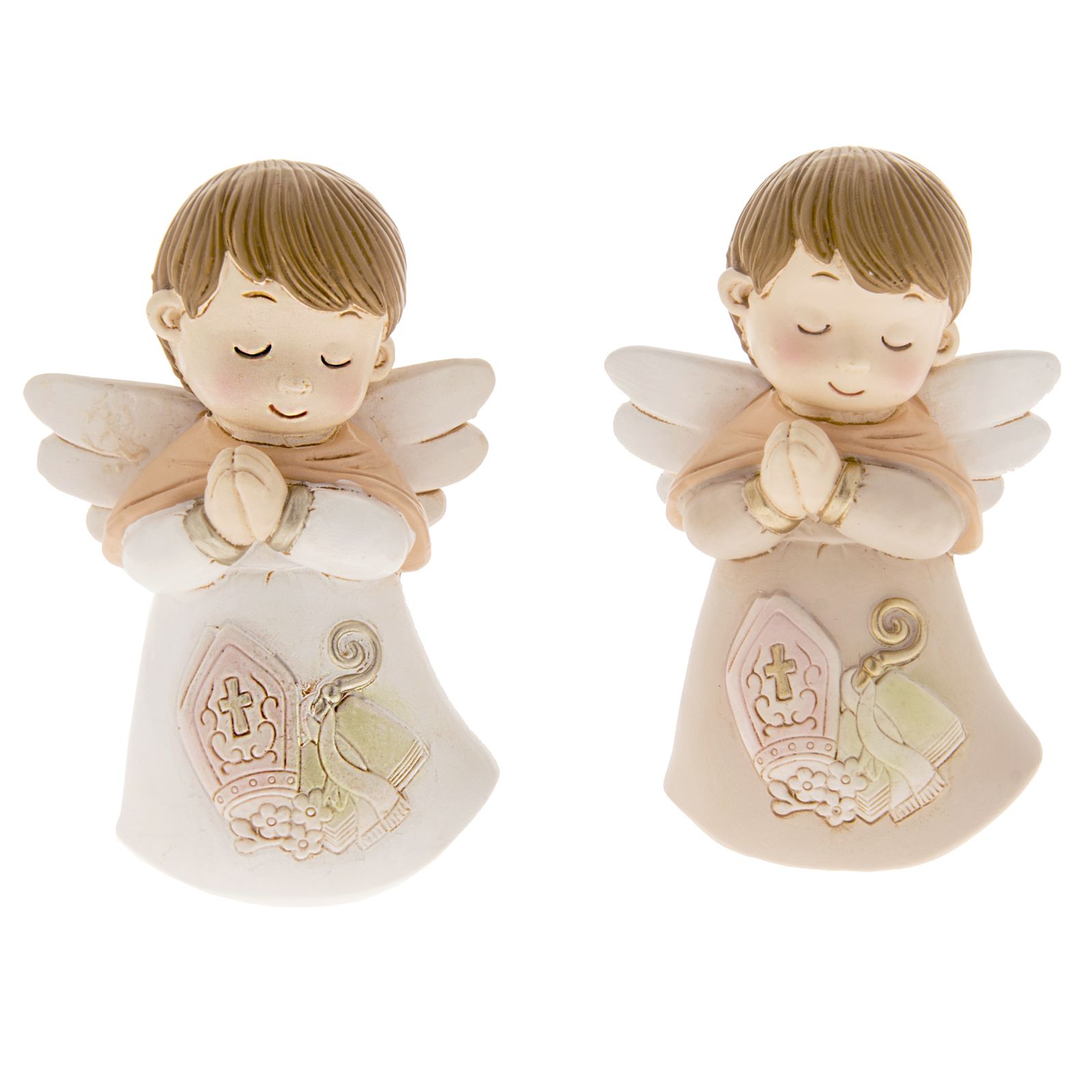 Angioletti in resina rappresentati assorti in preghiera in due varianti di colore (non selezionabili singolarmente) con una raffigurazione sulla parte inferiore della veste dei simboli sacri della Cresima: mitra e pastorale. Potrai scegliere tra due misure disponibili.