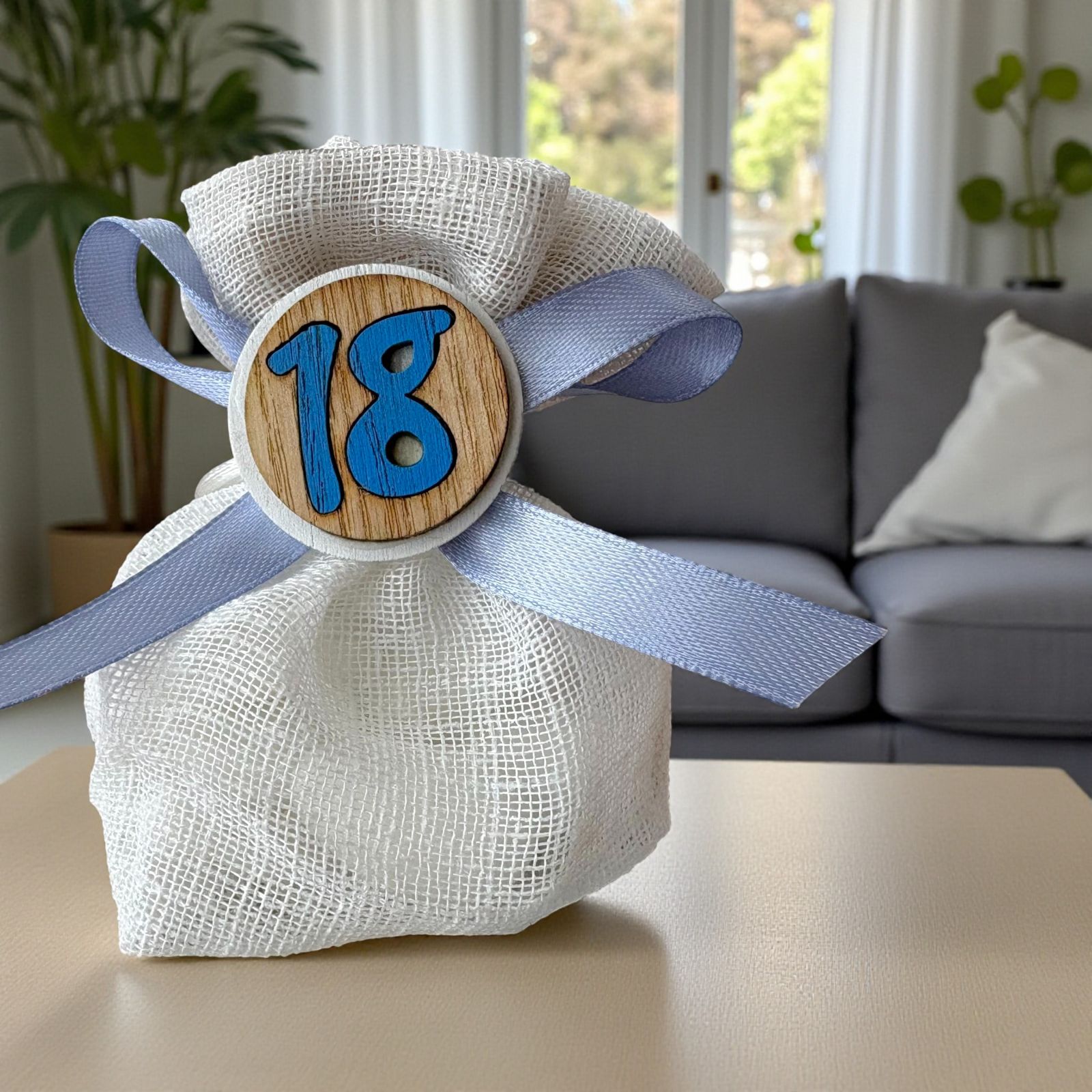 Realizzato in morbido tessuto con applicazione in legno, questo sacchetto portaconfetti racconta un momento speciale, il passaggio verso nuove scelte e sogni più grandi. Un ricordo semplice ma prezioso per chi partecipa a un giorno così importante, ideale se cerchi bomboniere economiche 18 che trasmettano cura e attenzione senza rinunciare allo stile.