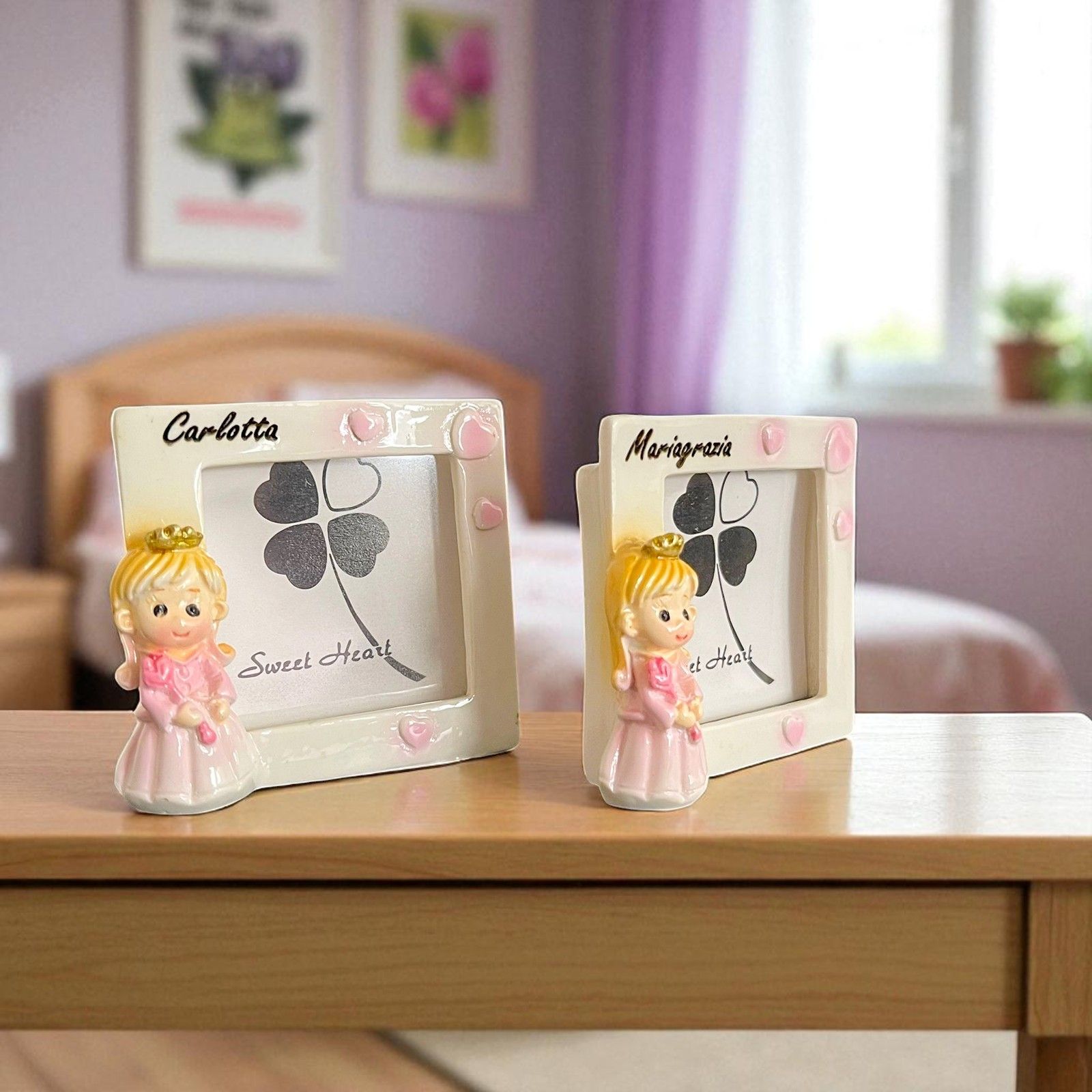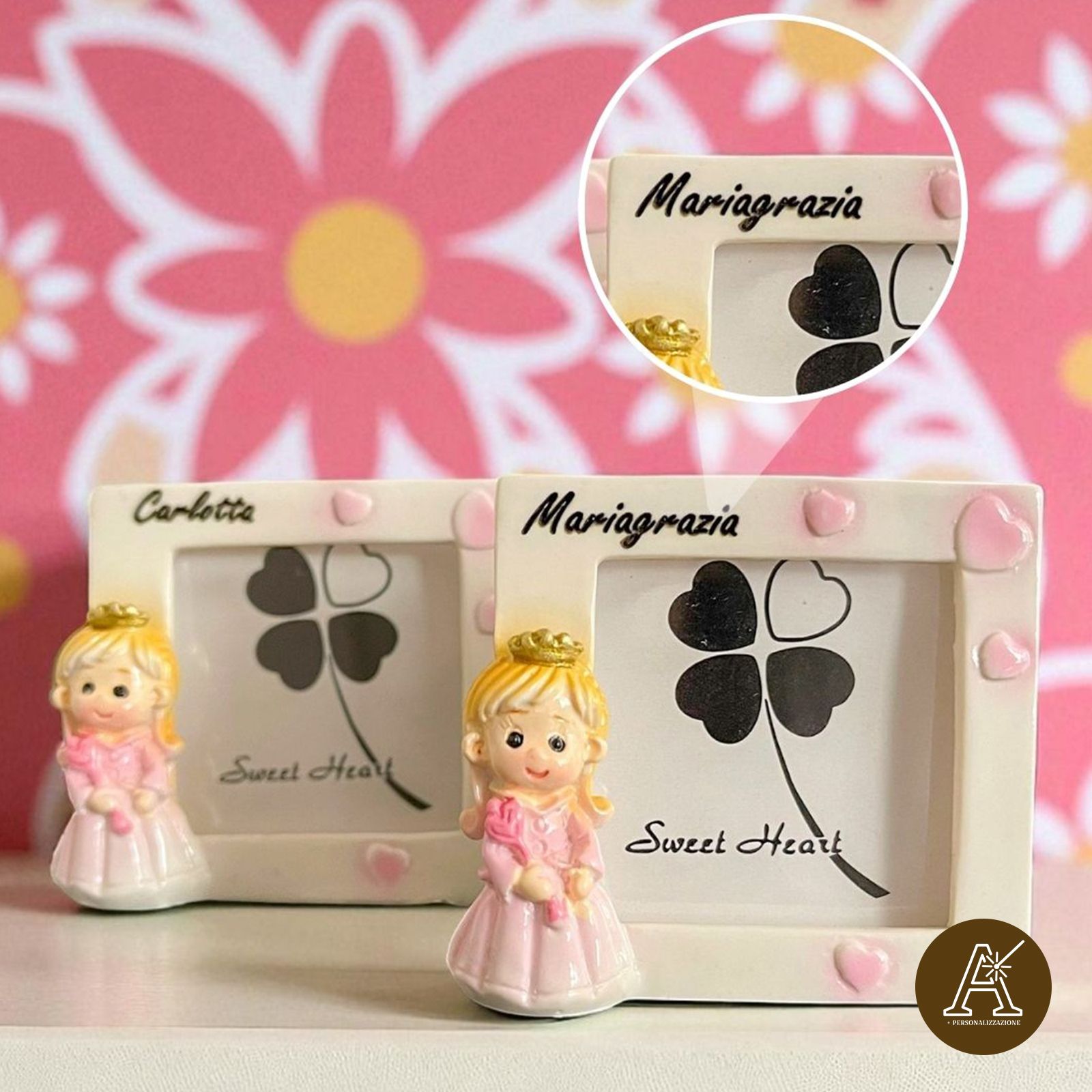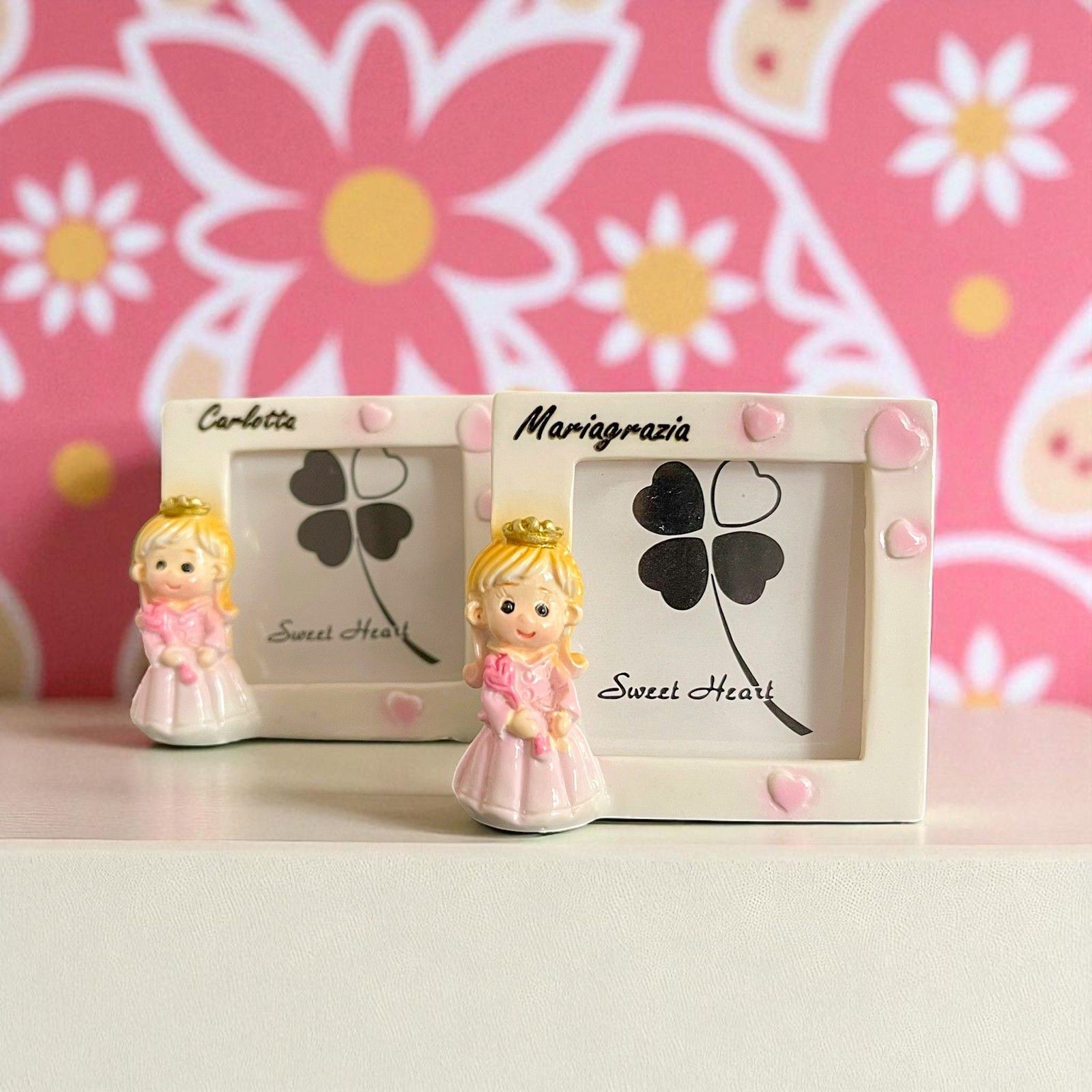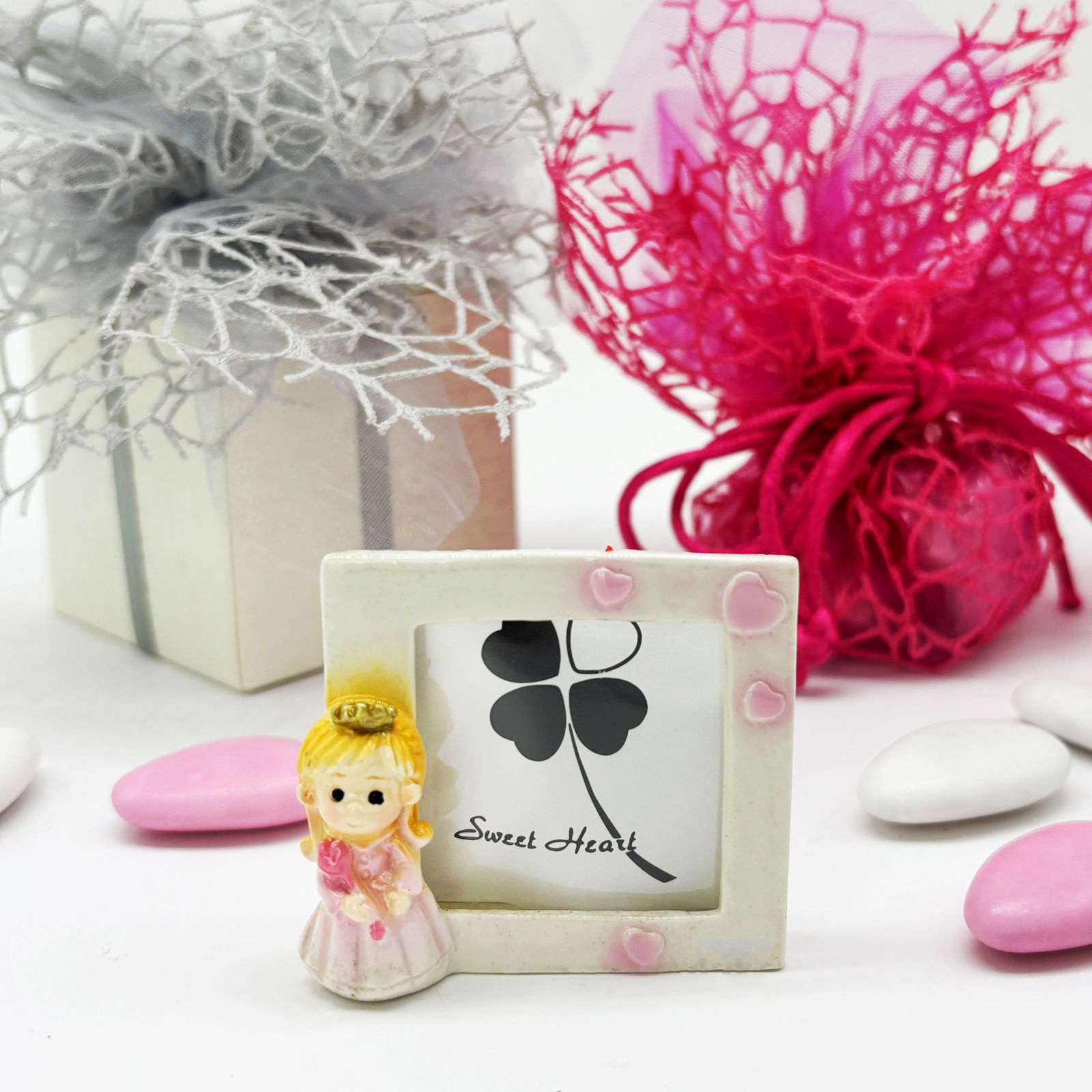 Questo mini portafoto è un simbolo di amore e felicità, perfetto da regalare ai tuoi ospiti per ringraziarli di aver condiviso con te questo momento speciale. Ogni volta che lo guarderanno, ricorderanno con affetto il giorno della nascita della tua bambina.