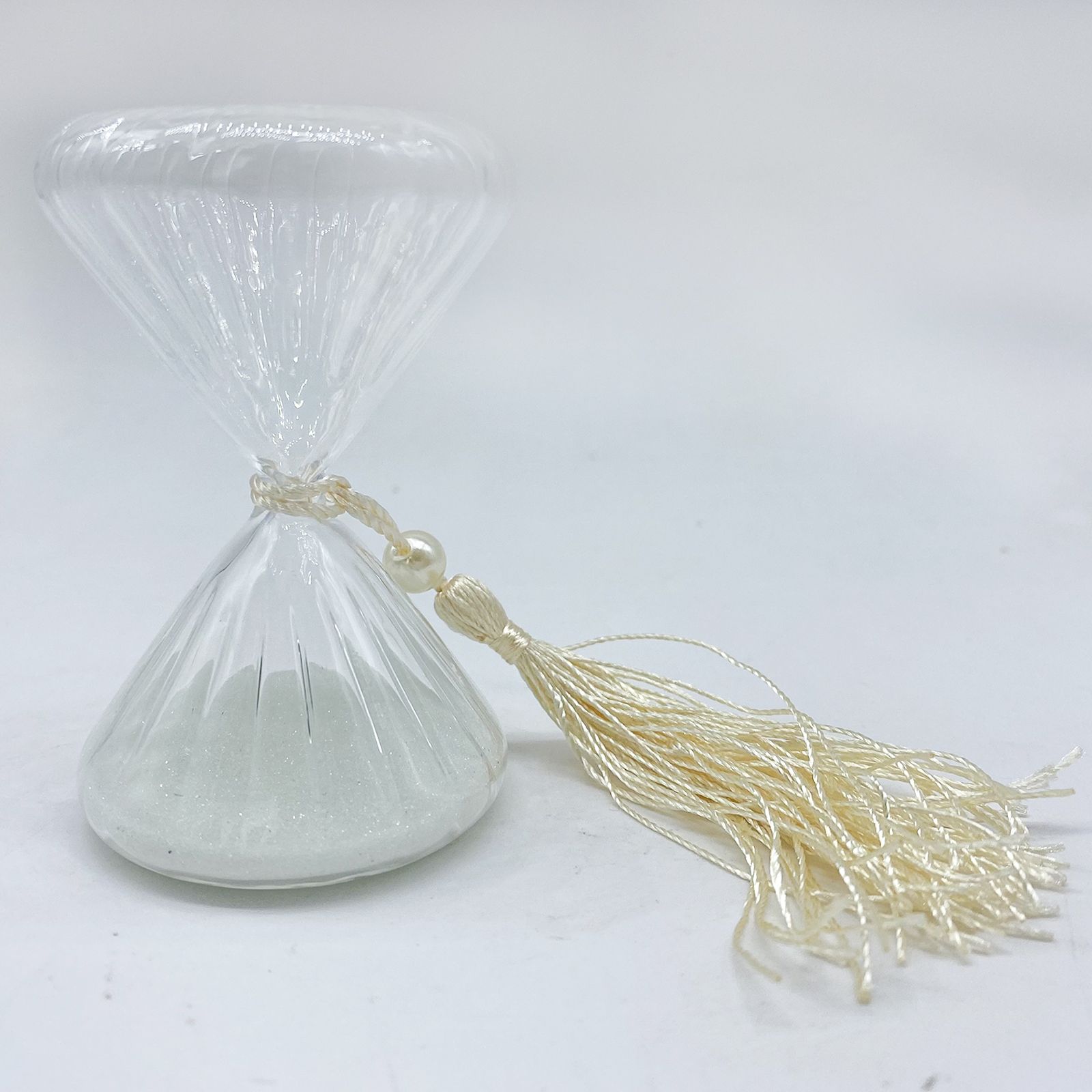 Con un'altezza di circa 7,5 cm, questa clessidra incanterà i tuoi ospiti con la sua bellezza delicata. La sabbia bianca che scorre dolcemente attraverso il vetro trasparente crea un effetto ipnotico, simboleggiando il flusso eterno del tempo.