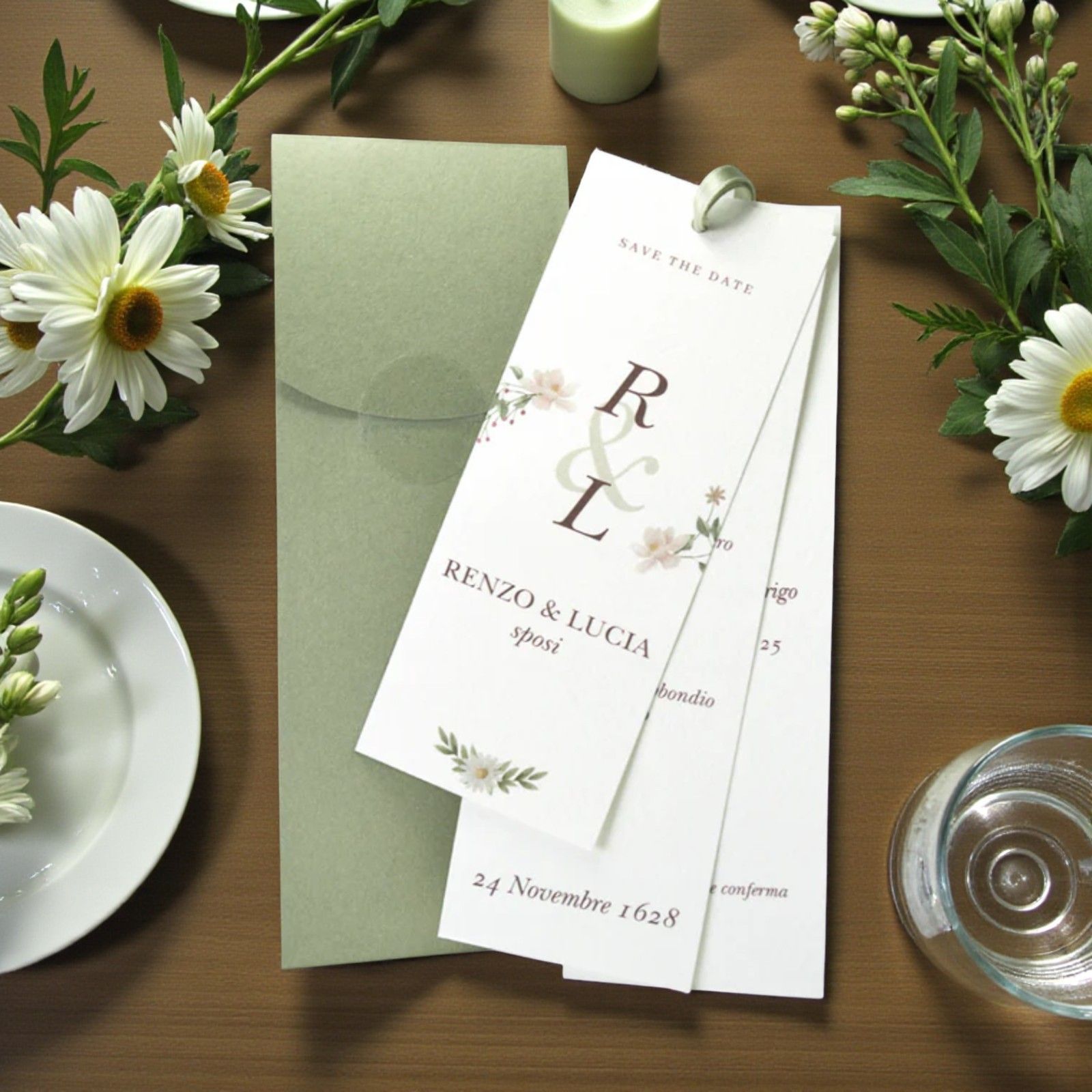 Scopri la bellezza di annunciare il tuo grande giorno con il nostro invito di matrimonio composto da 3 biglietti in un elegante verde salvia. Ogni partecipazione è una promessa, un gesto che racconta l’inizio di una nuova avventura per gli sposi e un modo per far sentire gli invitati parte di questo importante momento. Non si tratta solo di un semplice foglio, ma di un invito personalizzato che riflette l’unicità del vostro amore.
