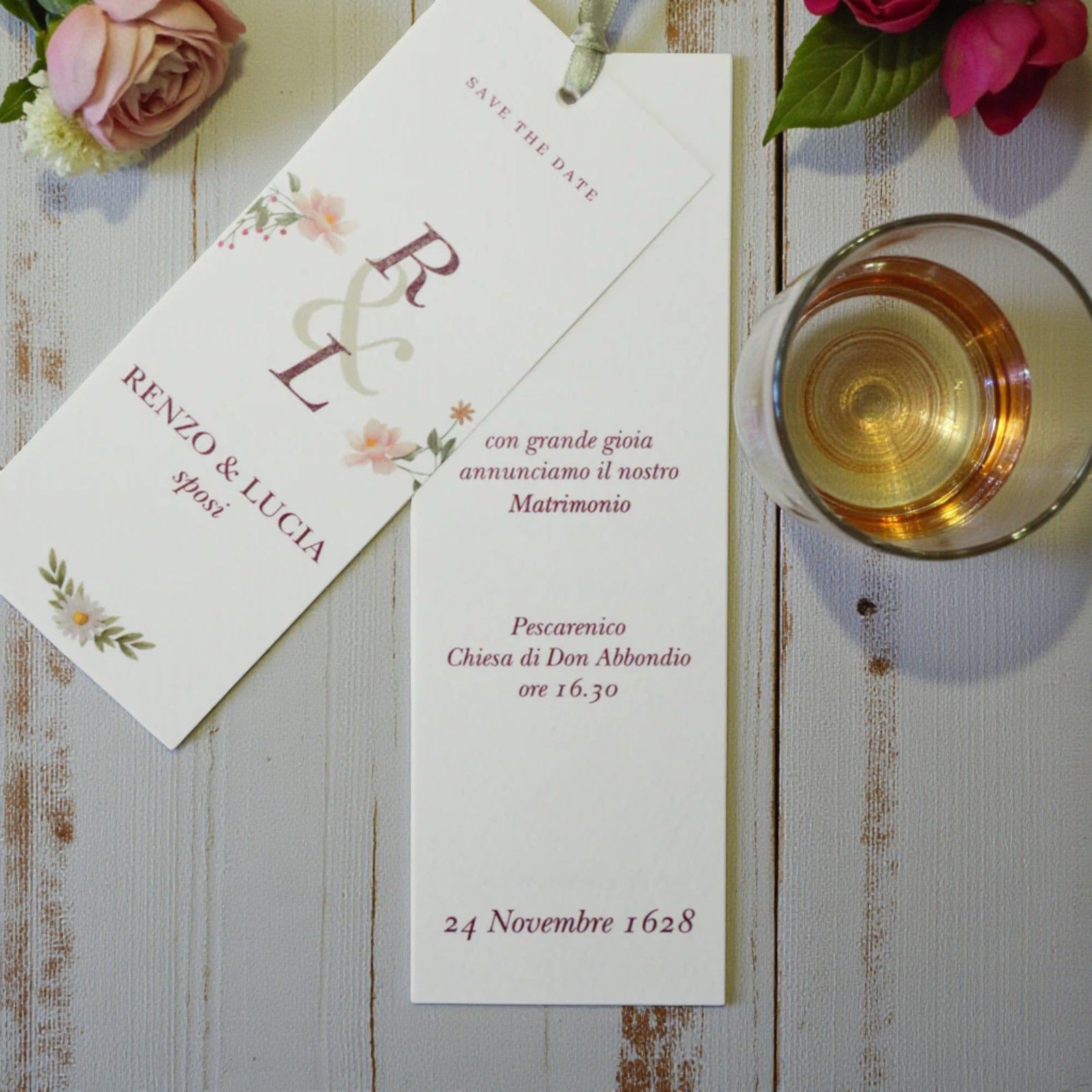Se vuoi decorare la busta della tua partecipazione con una chiusura originale, aggiungi le ETICHETTE ADESIVE RESINATE CON LE INIZIALI, che trovi qui.