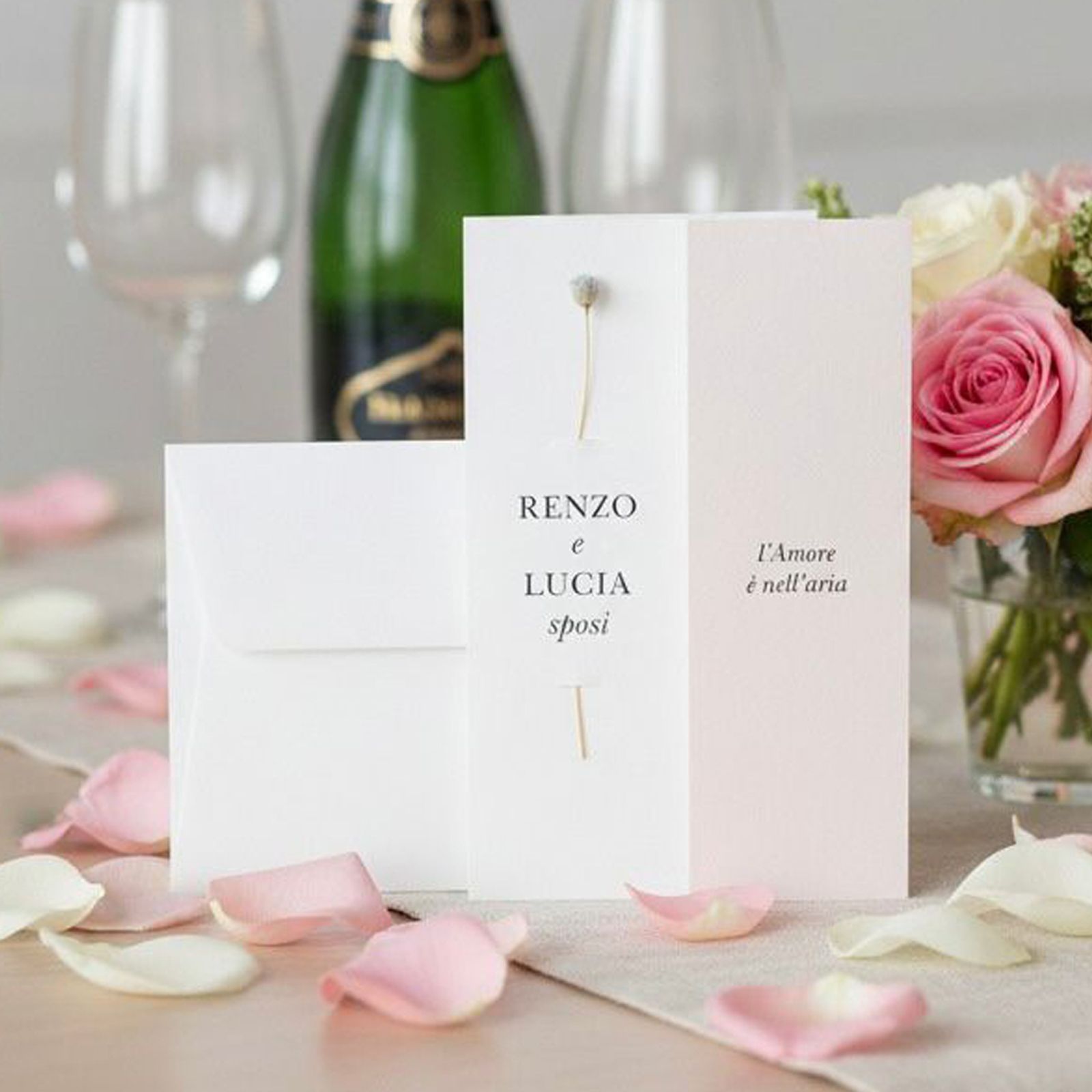Busta panna, bigliettino per bomboniera e stampa inclusi.
