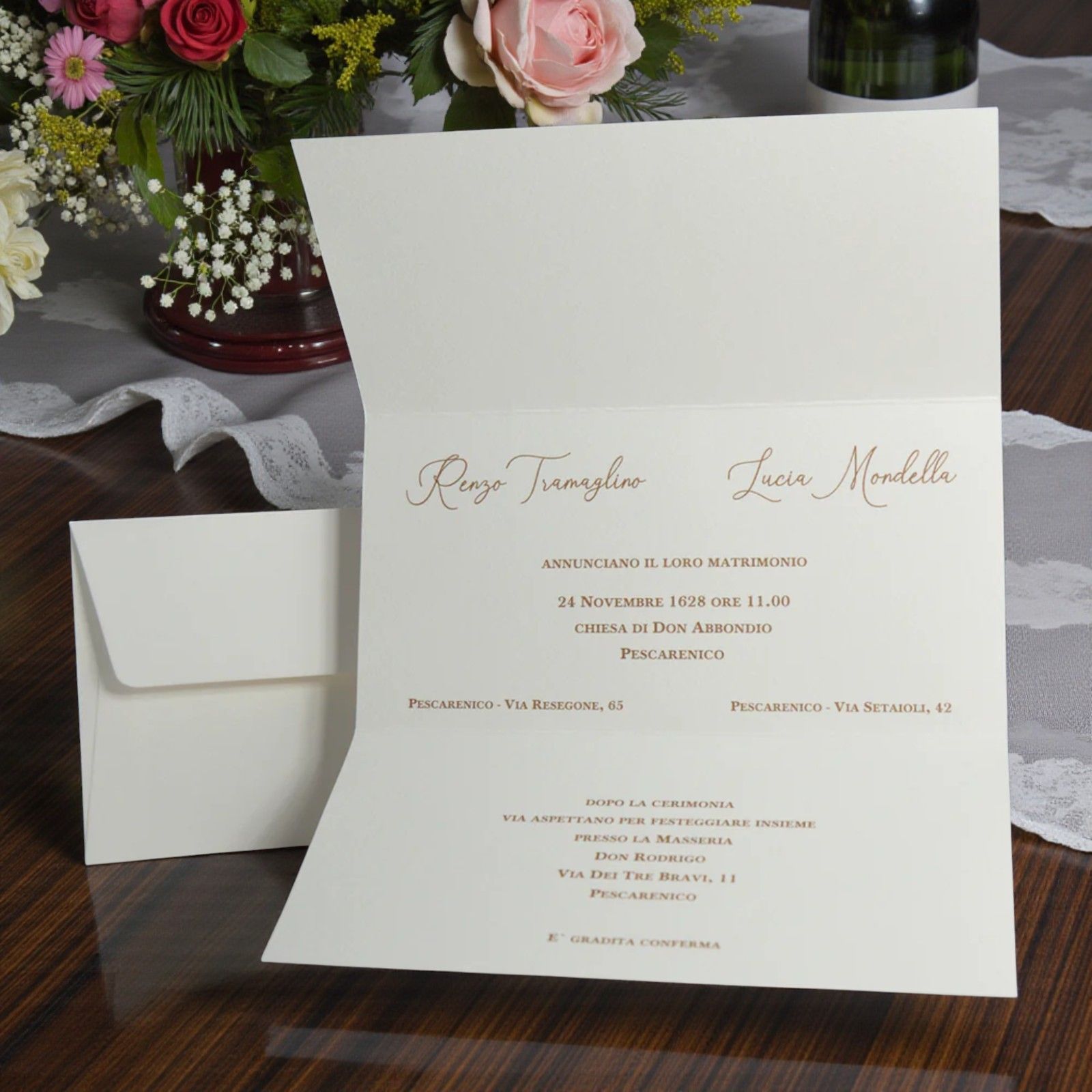 Ogni matrimonio merita di essere celebrato con un invito di matrimonio che rifletta l’amore unico tra gli sposi. Le nostre partecipazioni sono pensate per trasformare un semplice annuncio in un emozionante preludio alla vostra giornata speciale. Con un design raffinato e dettagli curati, ogni invito racconta una storia d’amore, invitando amici e familiari a far parte di un momento indimenticabile.