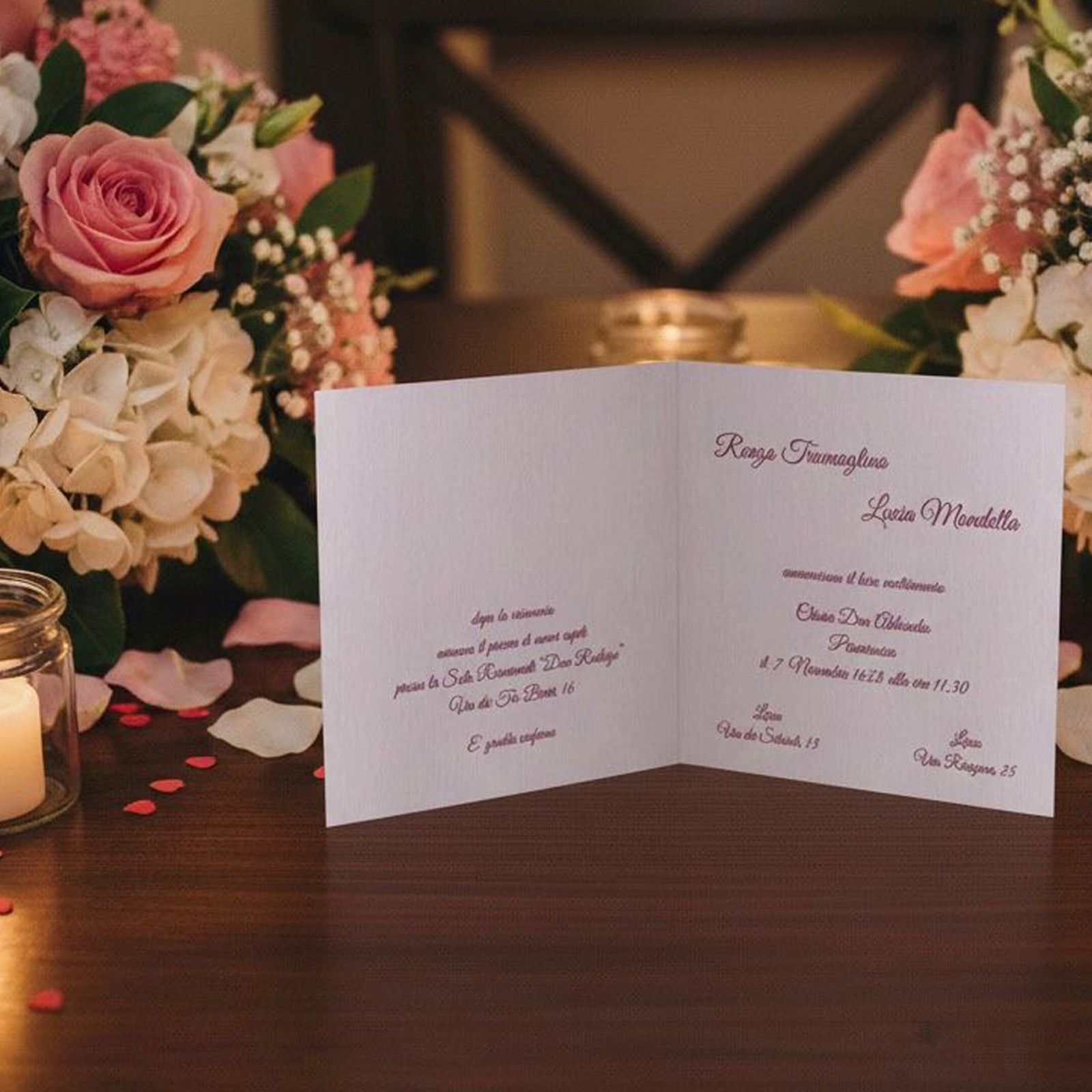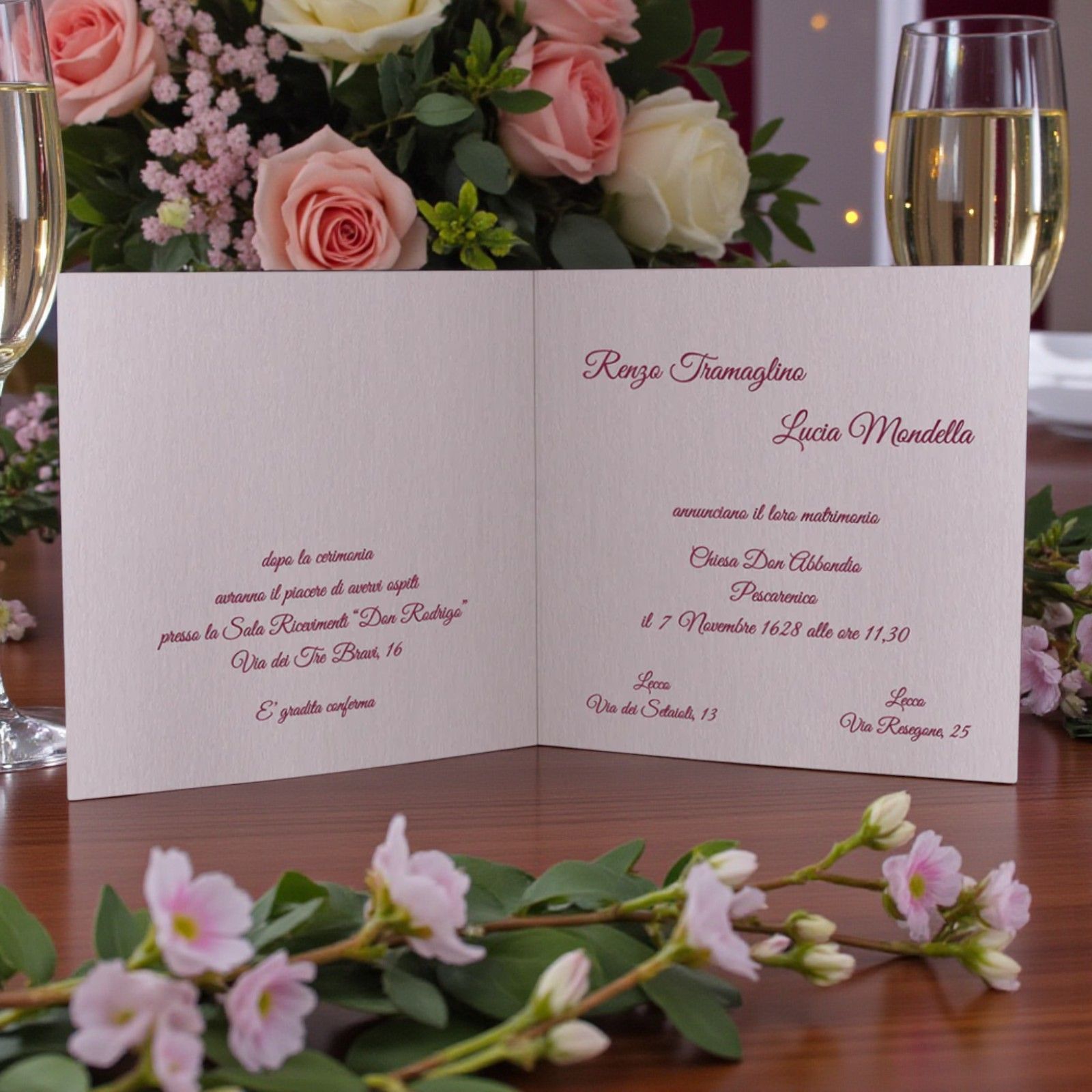 Dopo l'acquisto delle partecipazioni, riceverete via email le istruzioni per comunicarci i dettagli del vostro matrimonio, come i nomi degli sposi, la data e quante partecipazioni saranno solo per la chiesa e quante anche per il ristorante. Vi invieremo poi una bozza della partecipazione: una volta confermata da voi, procederemo con la stampa, per un annuncio perfettamente personalizzato.