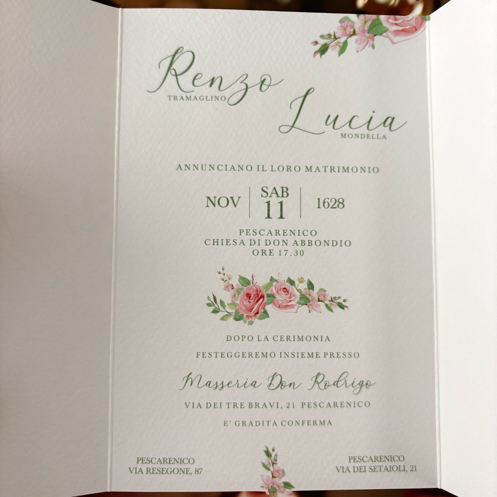 Presentiamo con gioia il nostro invito di matrimonio con Fiori Rosa, un'elegante partecipazione che cattura l'essenza dell'amore e della bellezza. Questo invito non è solo un pezzo di carta, ma un messaggero di emozioni che annuncia l'inizio di un viaggio unico per gli sposi. Con il suo design raffinato e le rose rosa delicatamente stampate, ogni invitato sentirà l'importanza dell'evento che si appresta a celebrare.