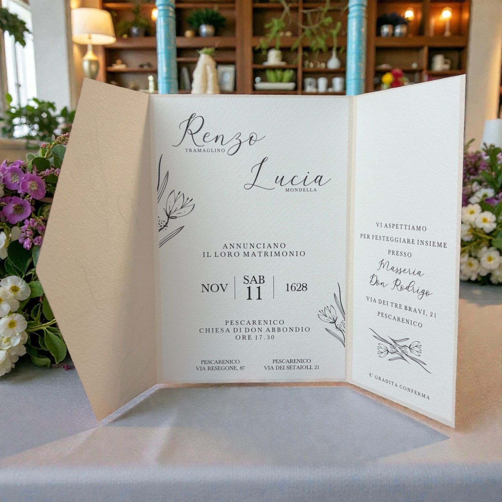 Per qualsiasi ulteriore informazione o personalizzazione, non esitate a contattarci. Siamo qui per aiutarvi a rendere ogni dettaglio del vostro grande giorno assolutamente perfetto.
