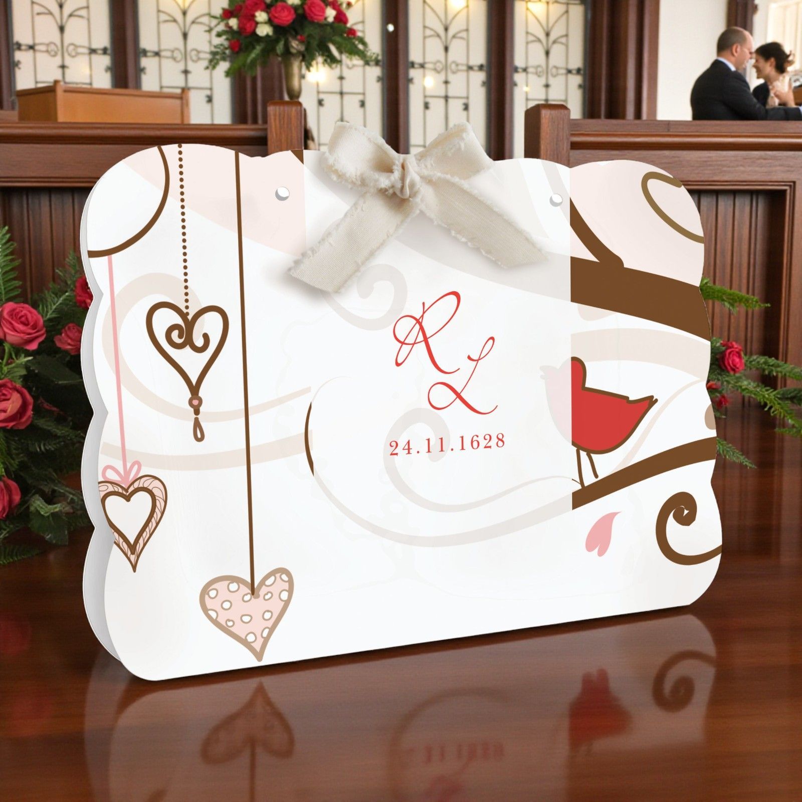 Scopri la nostra meravigliosa wedding bag con raffigurazione di un albero, cuori e un dolce uccellino, un dettaglio unico per il tuo matrimonio. Questa wedding bag, realizzata in cartoncino di alta qualità, di colore bianco con dettagli rossi, è pensata per rendere ancora più speciali le tue nozze, aggiungendo un tocco di eleganza e originalità alla tua cerimonia. Le iniziali degli sposi e la data del grande giorno saranno stampate con cura, rendendo ogni bag un ricordo unico e personalizzato.