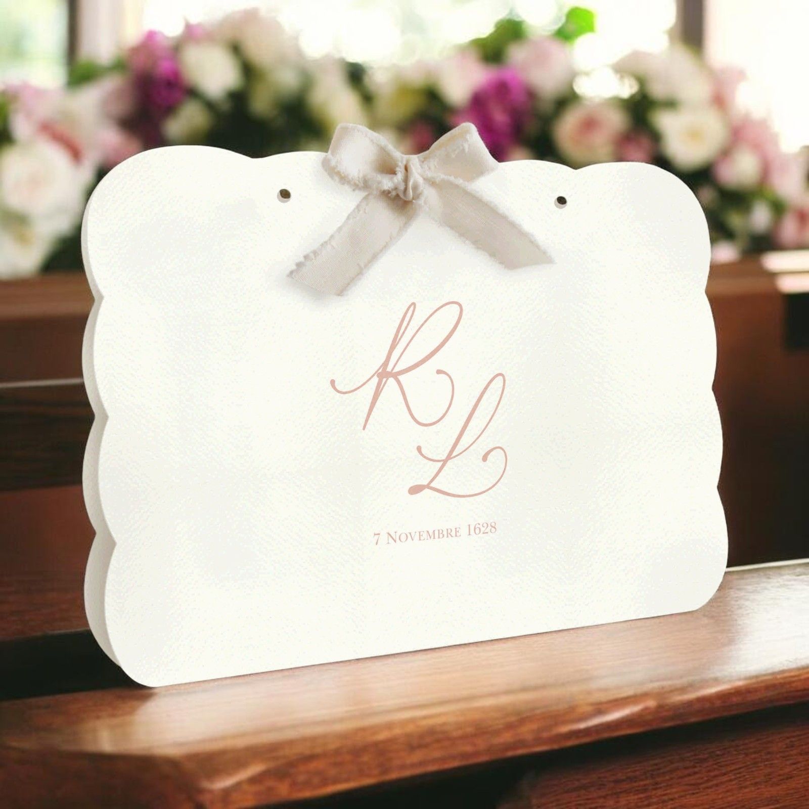 La wedding bag con iniziali in corsivo rappresenta un elemento fondamentale per le tue nozze. Non si tratta semplicemente di una borsa, ma di un accessorio che racchiude l'essenza del tuo giorno speciale, pensato per rendere ogni momento indimenticabile. Realizzata in cartoncino di alta qualità, questa bomboniera è personalizzabile con le iniziali degli sposi e la data del matrimonio, permettendo di creare un ricordo unico e originale che i tuoi invitati porteranno a casa.
