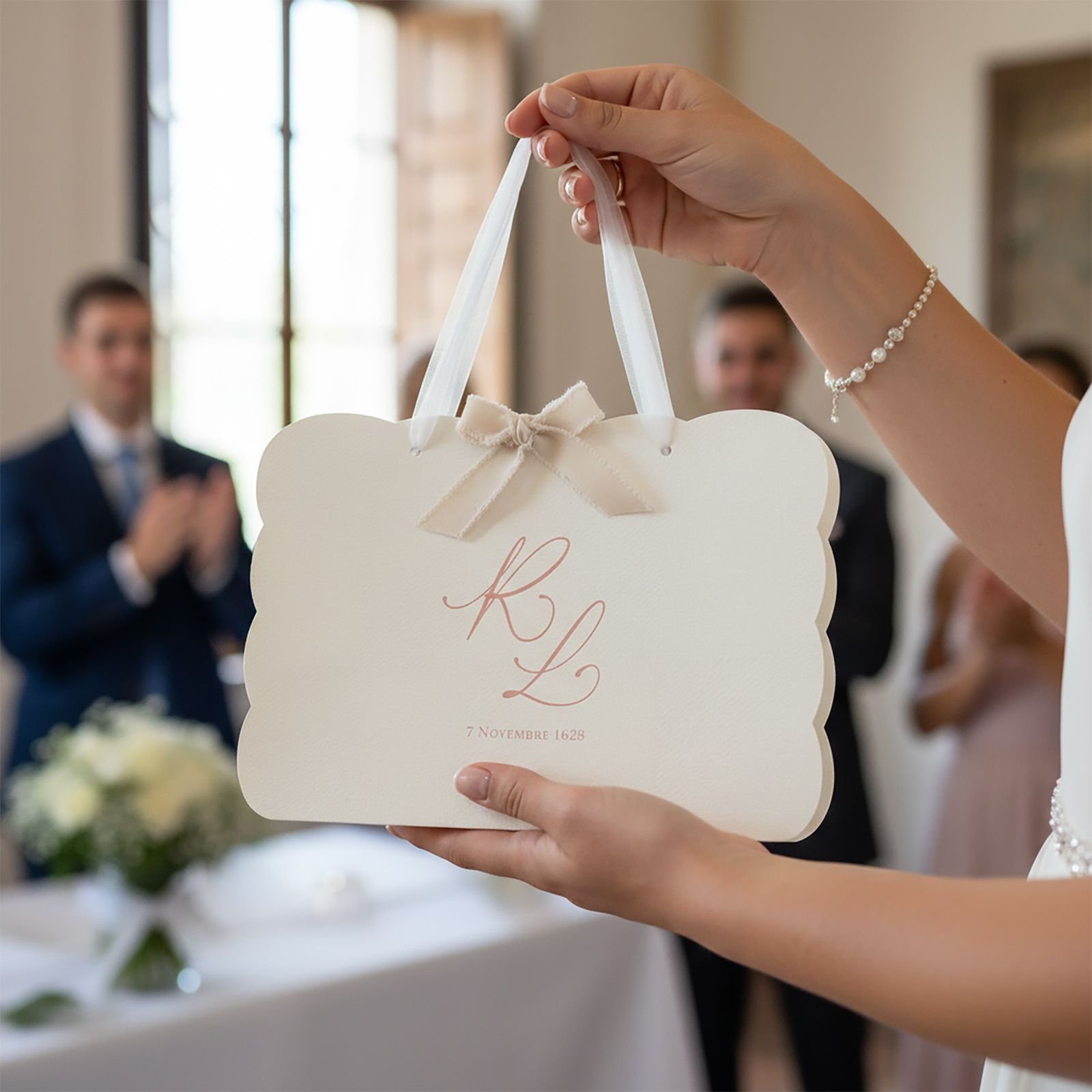 Abbina alla tua wedding bag, la partecipazione coordinata per completare il tuo evento con eleganza.