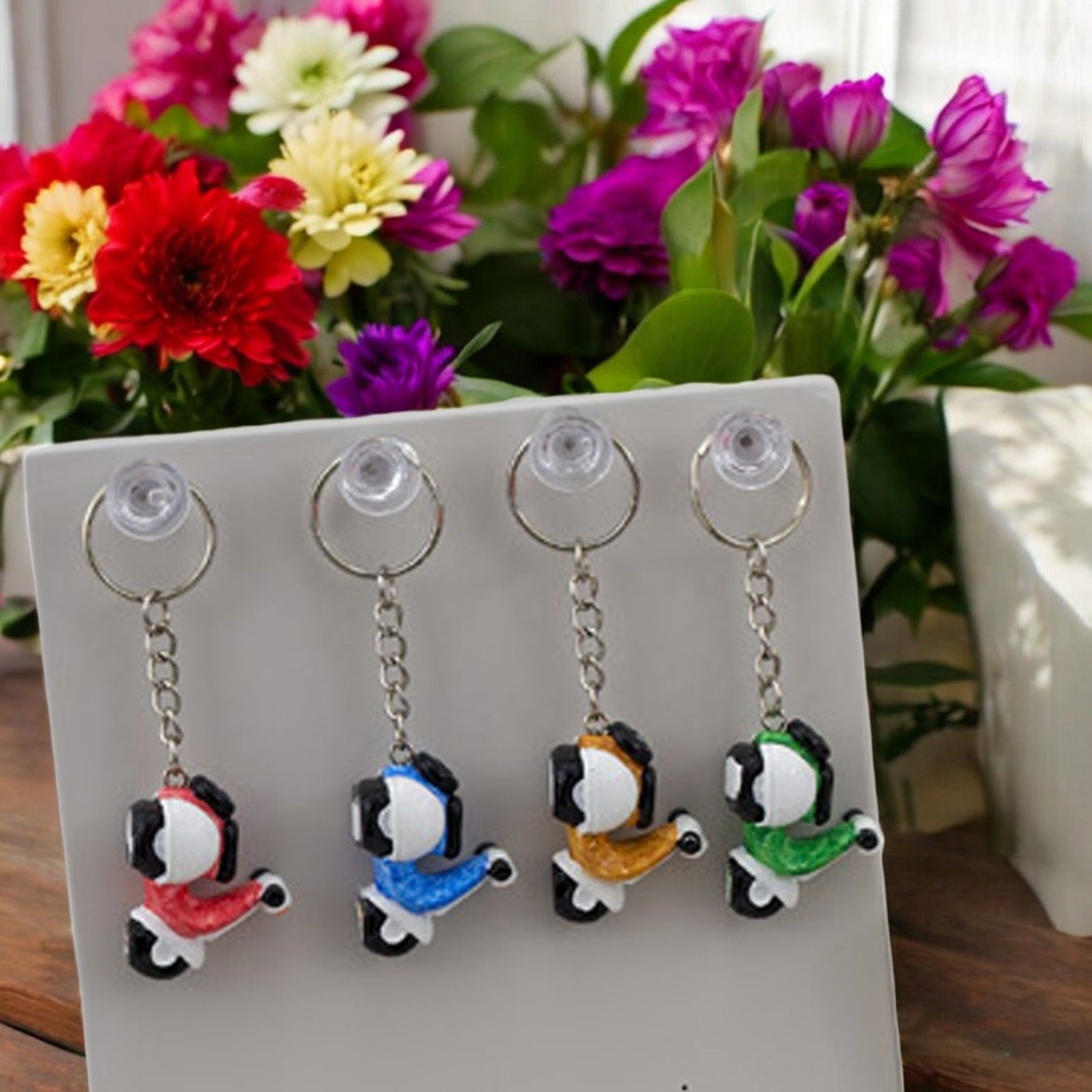 Realizzato in resina di alta qualità, questo portachiavi è disponibile nei colori rosso, verde, arancio e blu, e misura circa 4 cm. Scegli la tua tonalità preferita e stupisci i tuoi ospiti con un regalo unico e originale.