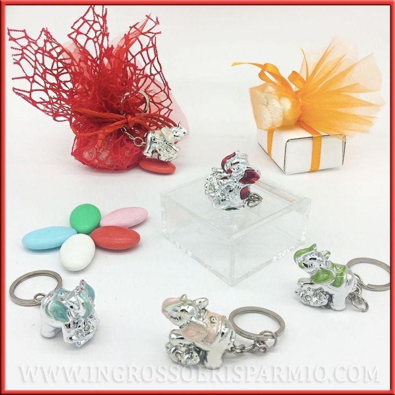 Bomboniere a portachiavi matrimonio con ciondoli elefanti portafortuna, ideali per ogni altro tipo di evento a seconda del colore scelto!