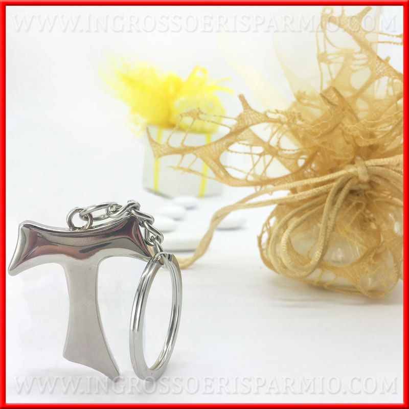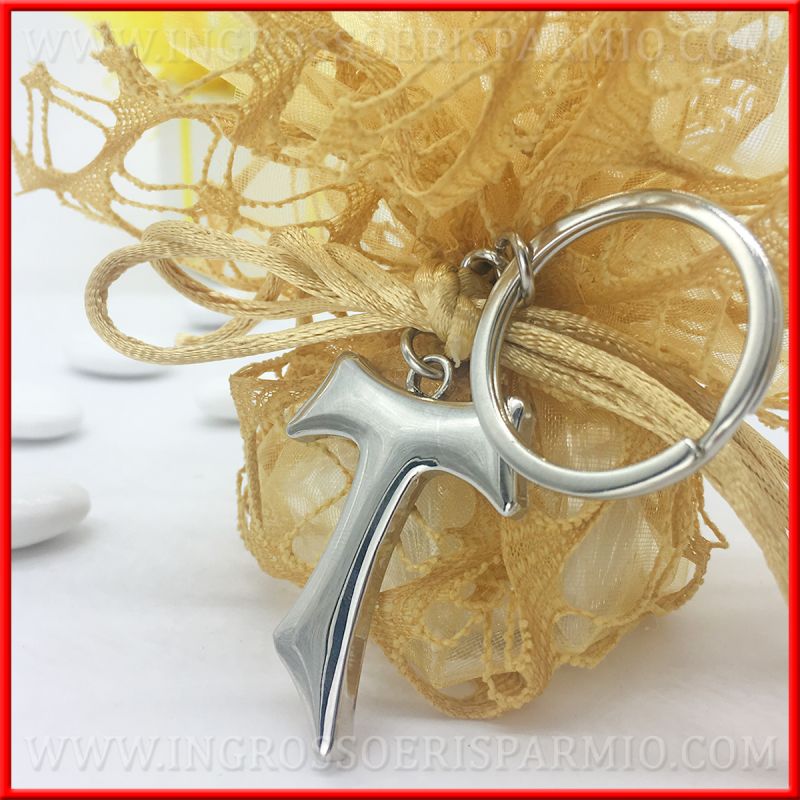 Portachiavi tau acciaio da utilizzare come bomboniere prima comunione o bomboniere cresima.