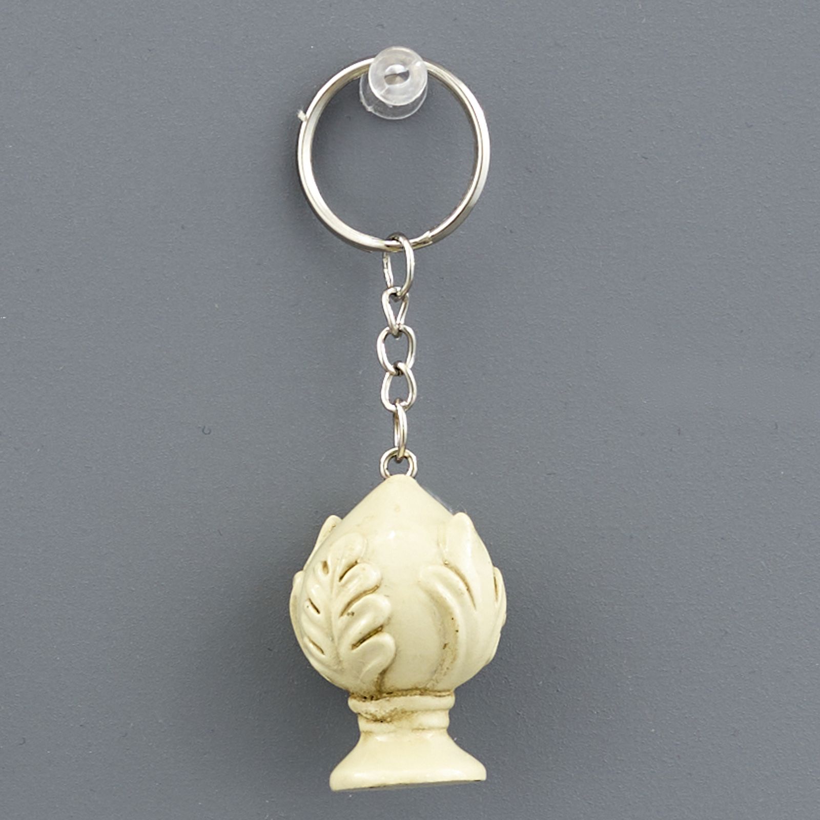Portachiavi con pumo in resina colorata, ricco di particolari, con catenina e anello già assemblati.