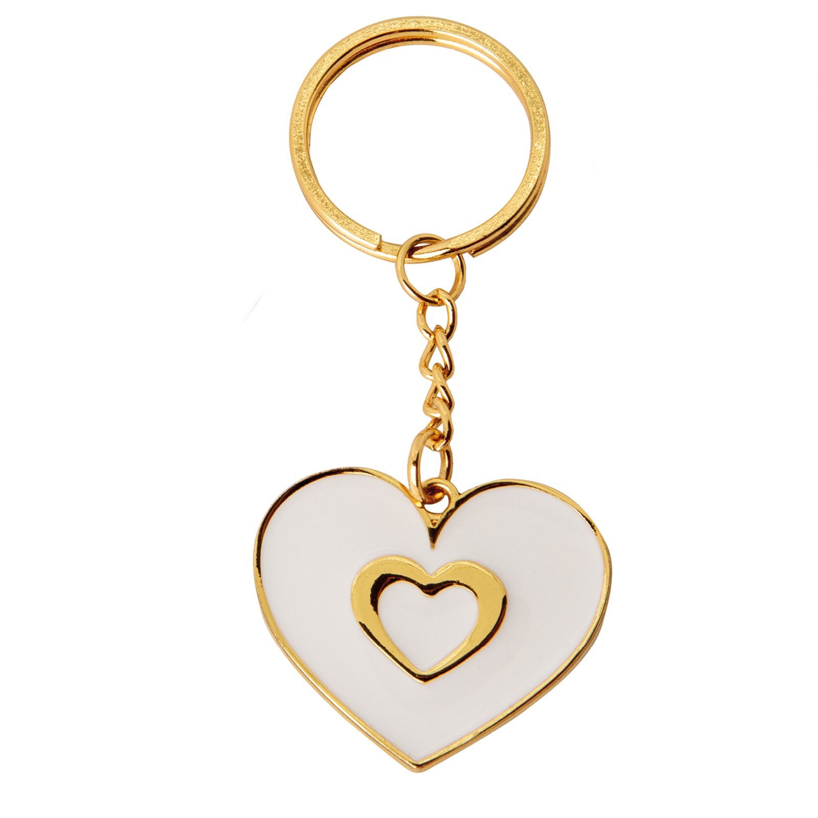 Questo elegante portachiavi a forma di cuore con cuoricino centrale è il regalo perfetto per i tuoi ospiti in occasione di un matrimonio o di un anniversario. Realizzato in metallo zama color oro, questo gadget raffinato è ideale come segnaposto o come pensierino da inserire nella confettata. Le dimensioni di circa 4 cm lo rendono un accessorio discreto e delicato, perfetto per accompagnare i tuoi invitati nel giorno speciale.