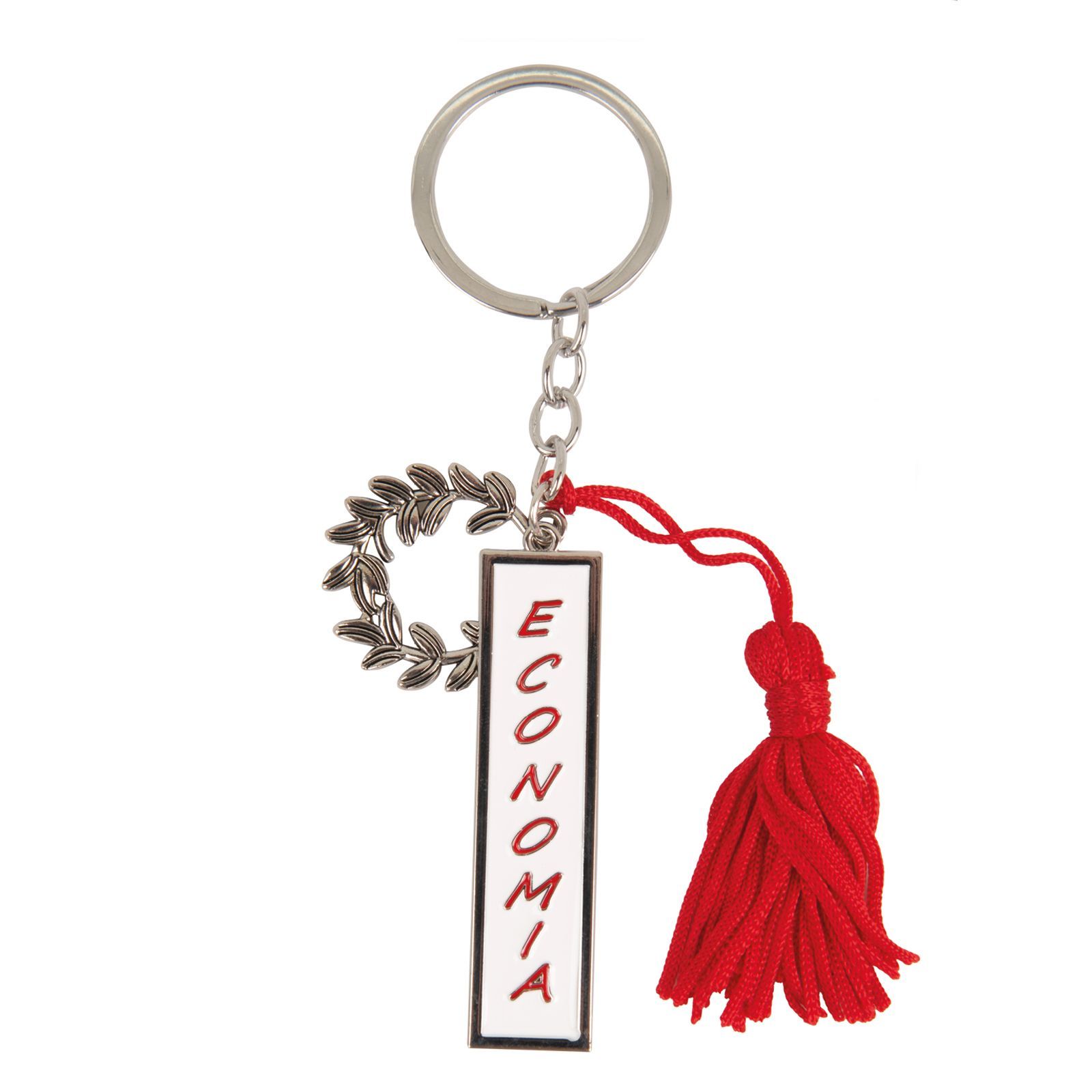 Non perdere l'occasione di sorprendere i tuoi ospiti con un regalo indimenticabile. Scegli il portachiavi con ciondolo con corona alloro, nappina rossa e ciondolo con la scritta Economia per rendere ancora più speciale e memorabile il giorno della laurea.