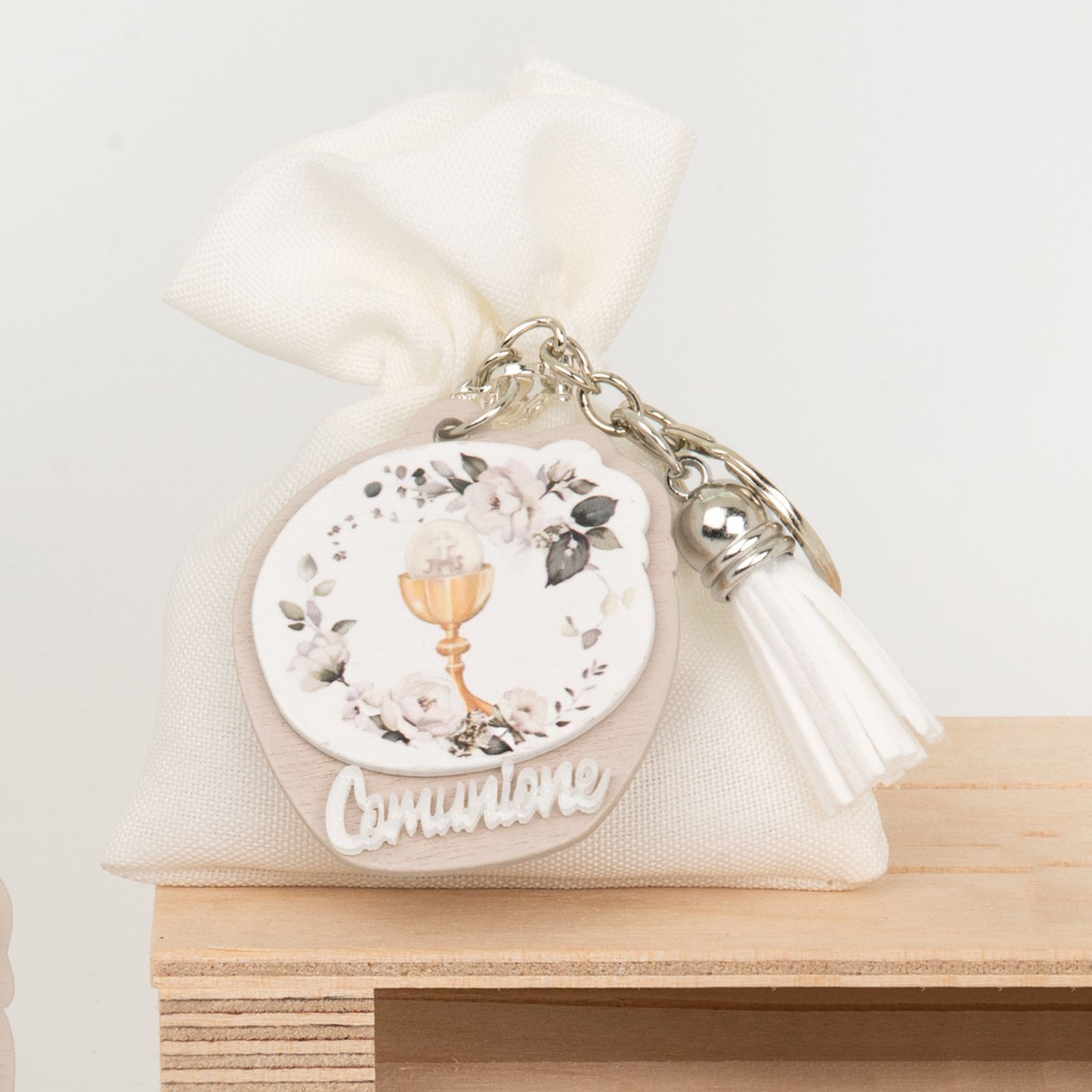 Il momento della comunione è un evento speciale che merita di essere celebrato con un regalo unico e significativo. Questo sacchettino per confetti accompagnato da un portachiavi con simboli della prima comunione è un'opzione perfetta per ringraziare gli invitati e lasciare loro un ricordo indimenticabile di questa giornata così importante.