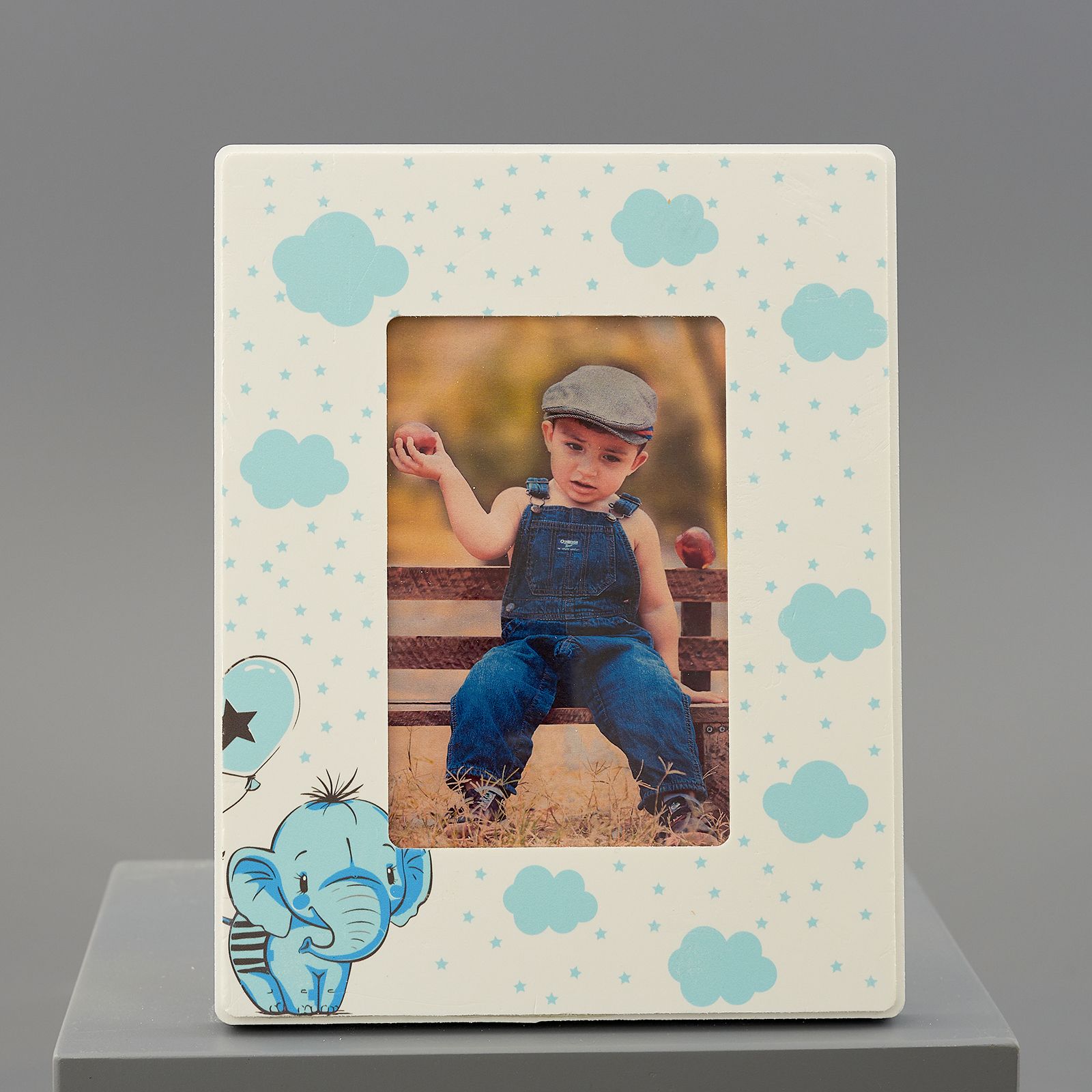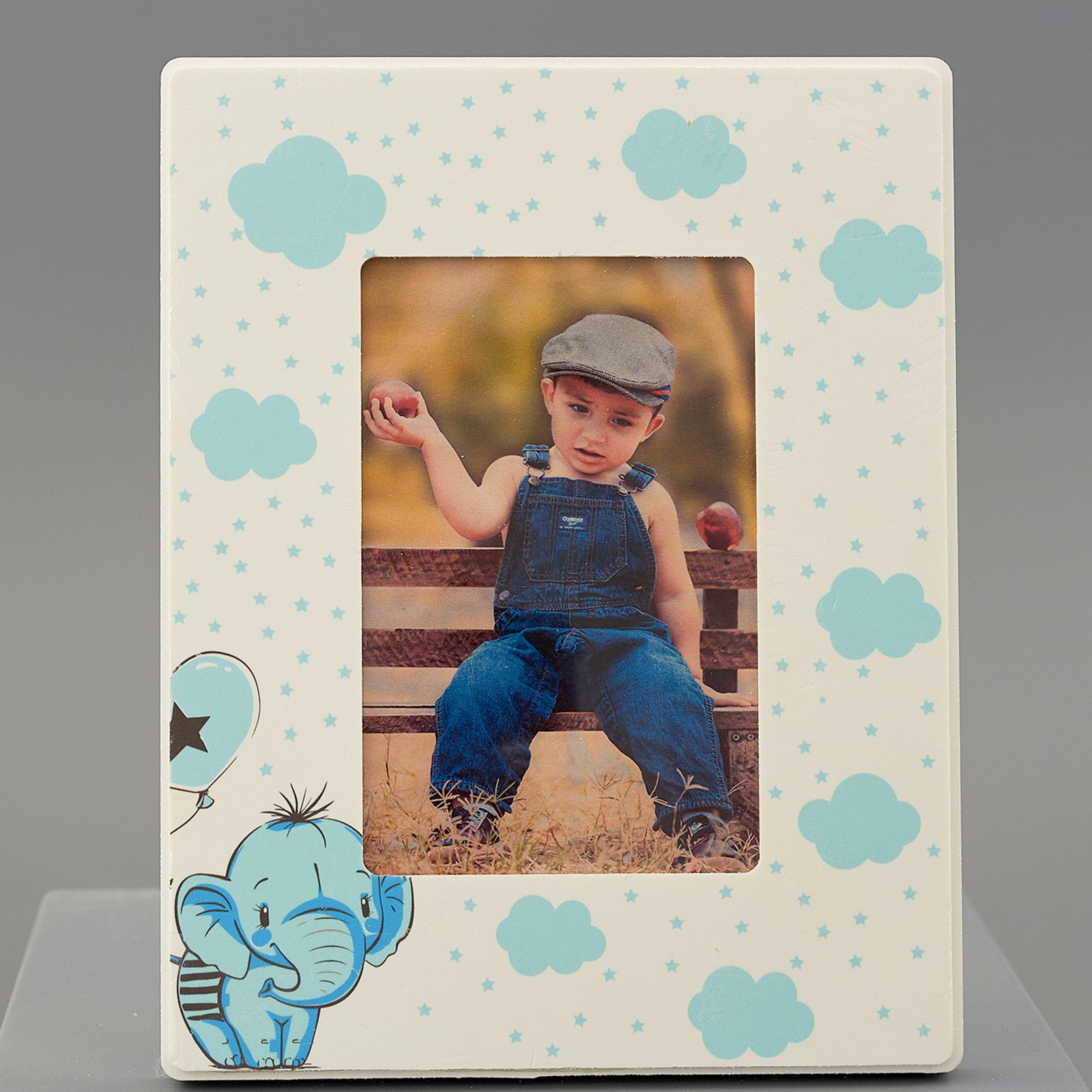 Scegli le nostre cornici in legno con elefantino con palloncino a forma di cuore e nuvole celesti. Poi scegliere di completare le tue cornici inserendo direttamente la foto del tuo bambino!