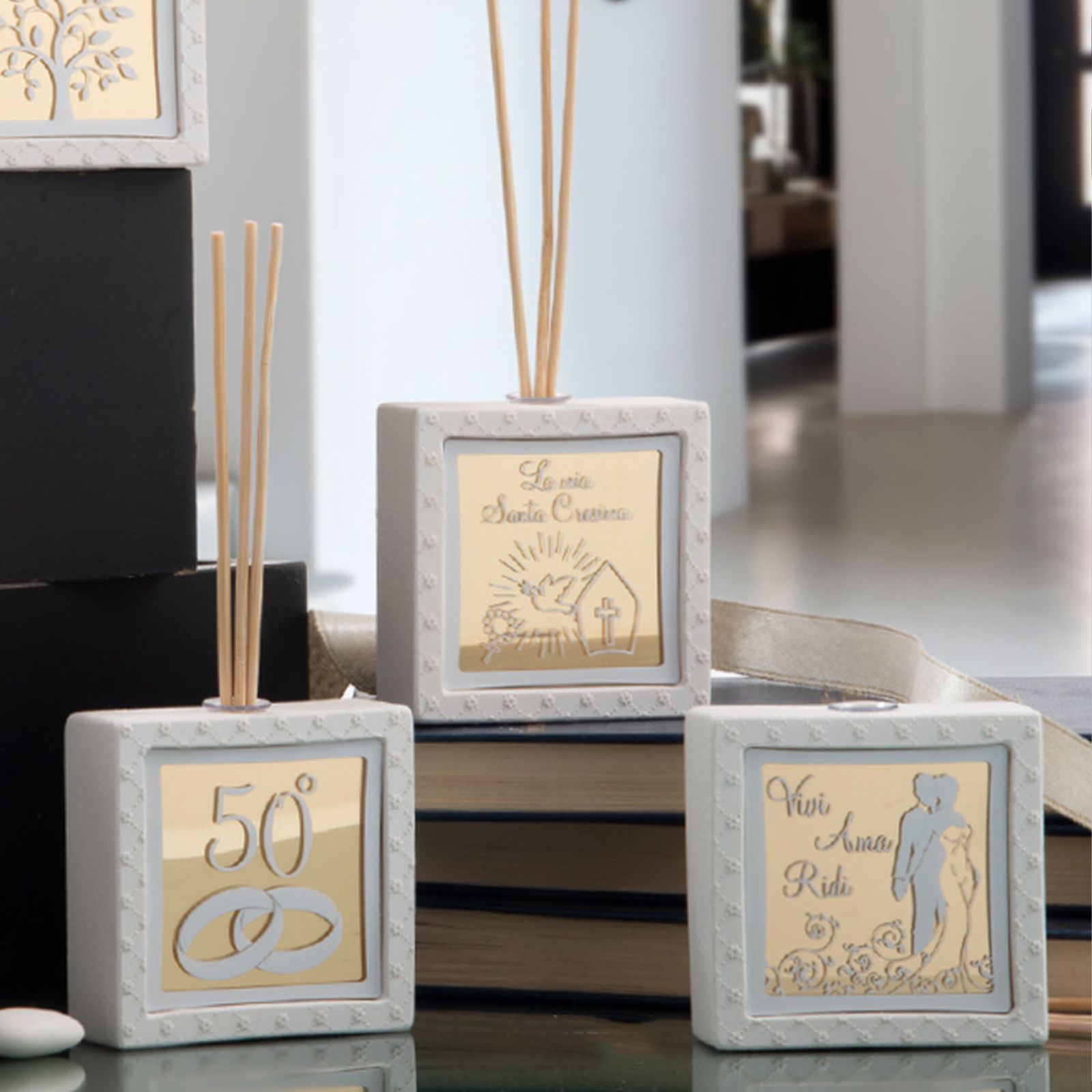 Fai della tua occasione speciale un ricordo che rimarrà nel cuore di tutti con il nostro esclusivo profumatore ambiente, un'idea raffinata e profumata per celebrare eventi come battesimi, comunioni, cresime, matrimoni e anniversari di 50 anni.