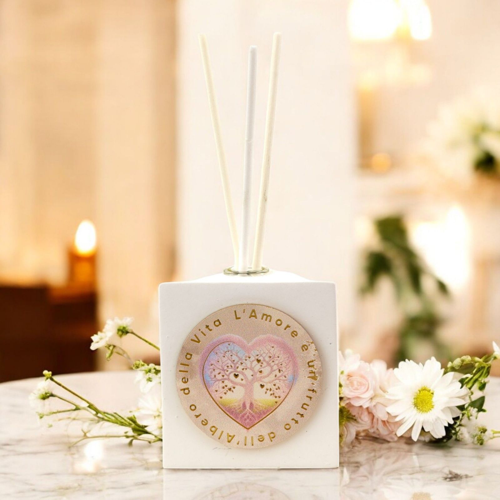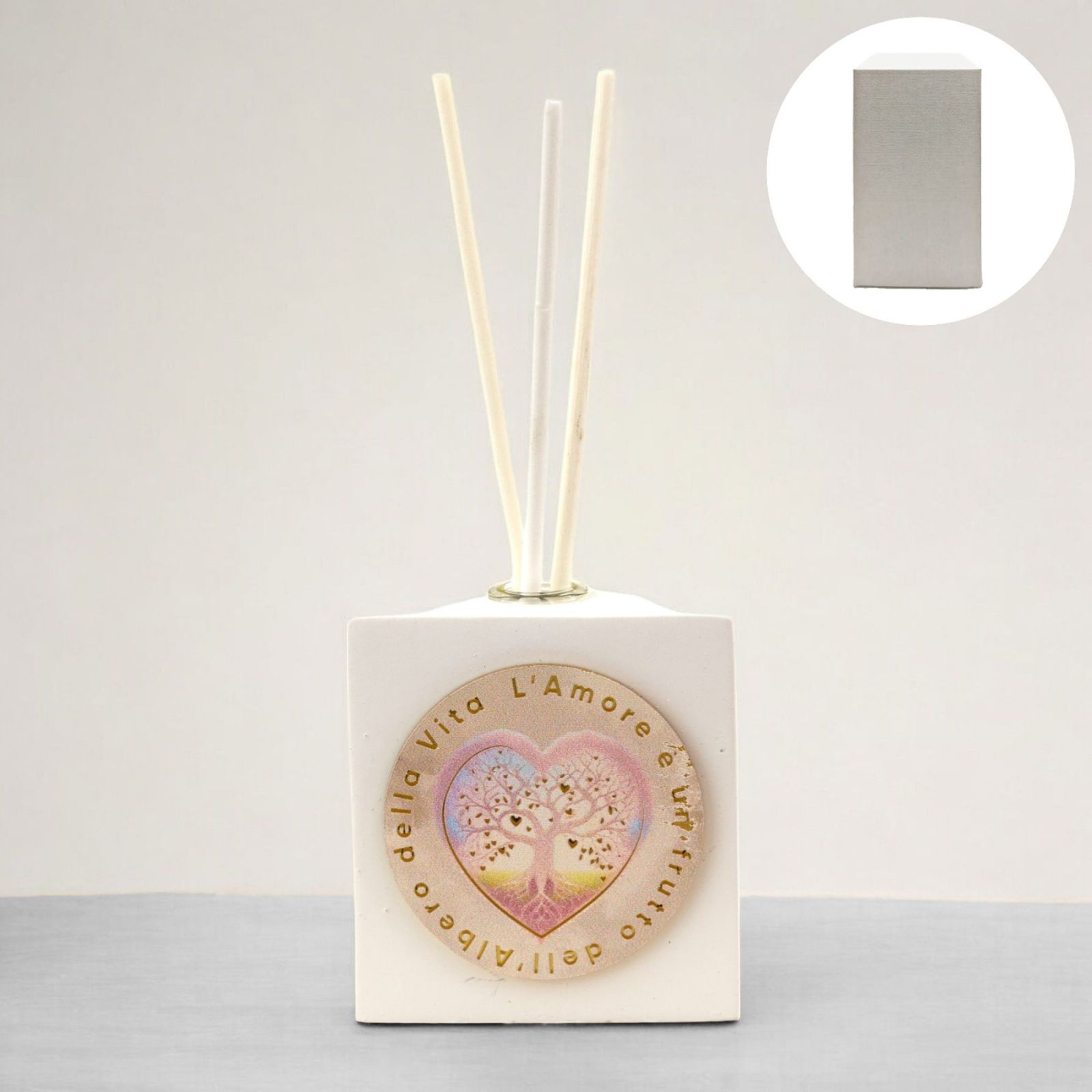 Non perdere l'occasione di stupire i tuoi ospiti con un regalo originale e raffinato. Acquista ora la bomboniera profumatore quadrato con albero della vita e cuore e lascia un segno indelebile nei cuori di chi ami.