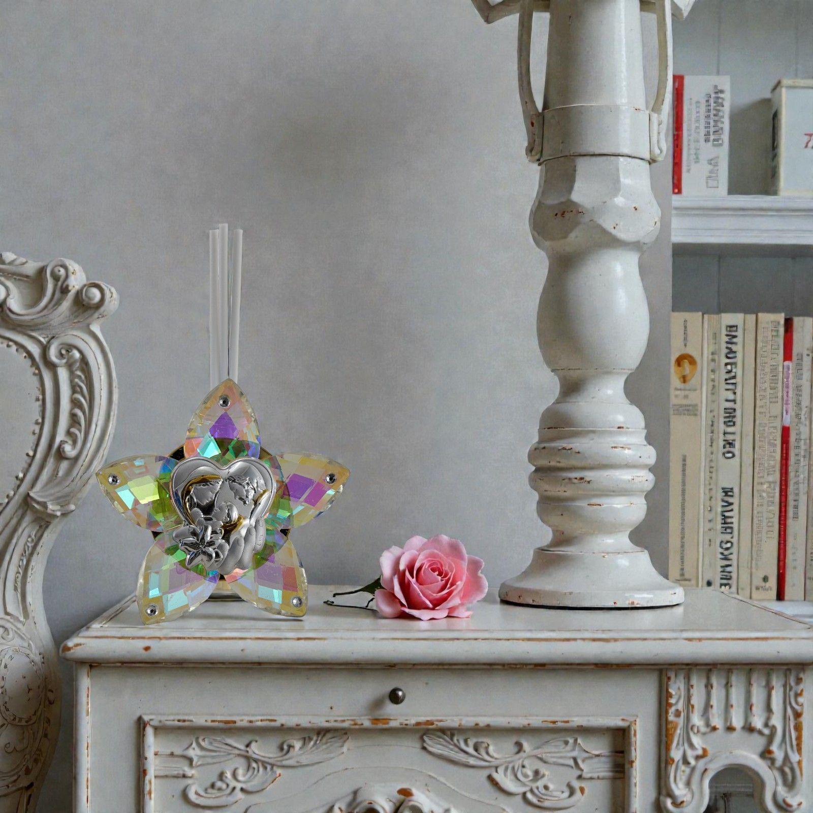 Scopri la nostra bomboniera esclusiva: un raffinato diffusore ambiente a forma di fiore, arricchito da una delicata placchetta con la Sacra Famiglia. Questo omaggio non è solo un semplice regalo, ma un simbolo di amore e protezione, perfetto per celebrare momenti speciali come battesimi, comunioni e cresime. Ogni volta che verrà utilizzato, diffonderà un profumo avvolgente che ricorderà a chi lo riceve il valore dei legami familiari e della fede.