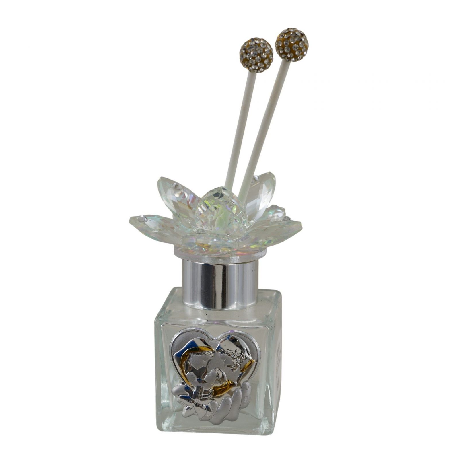 Immagina il sorriso dei tuoi invitati quando riceveranno questo diffusore ambiente unico: un piccolo gioiello per celebrare battesimo, comunione o cresima. Il tappo argentato con fiore in swarovski e la placchetta a cuore con la Sacra Famiglia trasformano questo dono in un ricordo prezioso che scalda il cuore. Regalare questa bomboniera significa anche condividere un messaggio di affetto, protezione e spiritualità, un gesto che celebra i valori della famiglia e della fede e che rimarrà come simbolo duraturo di questo giorno speciale.